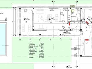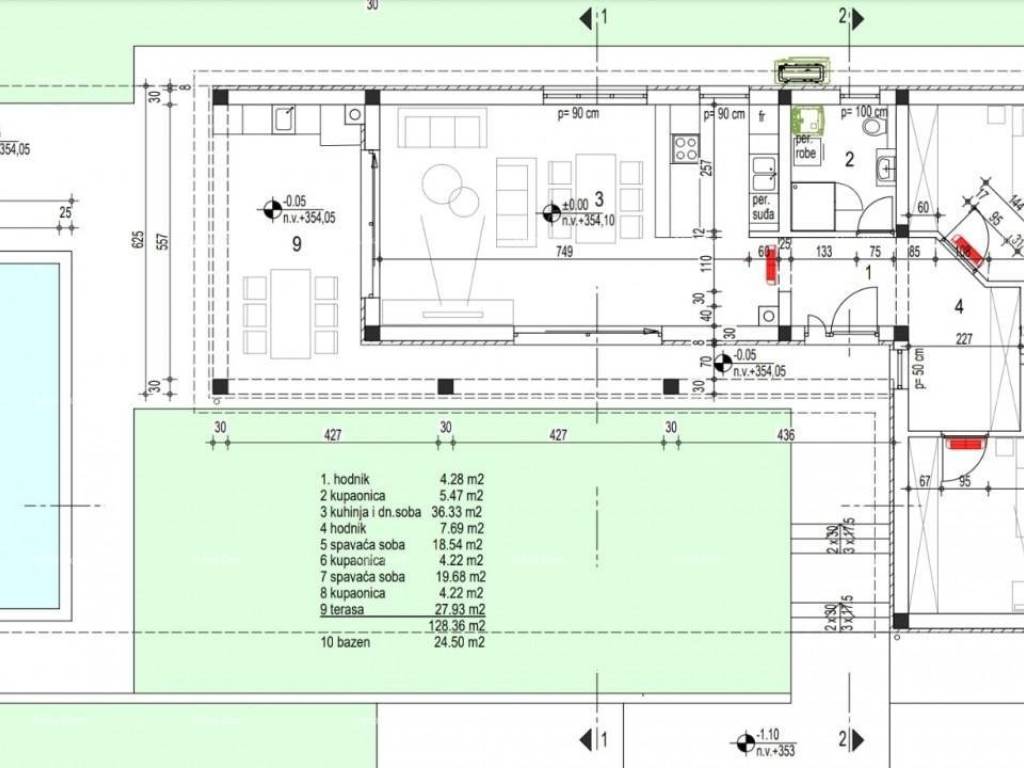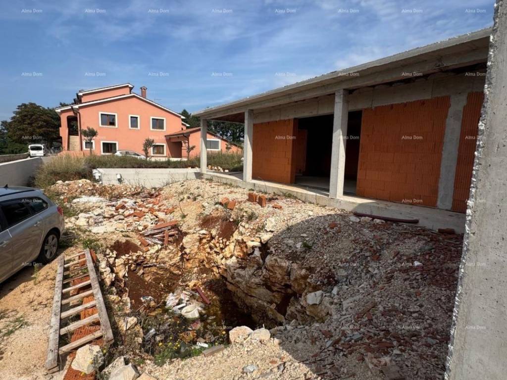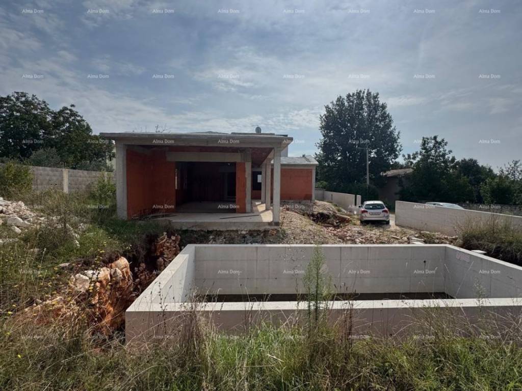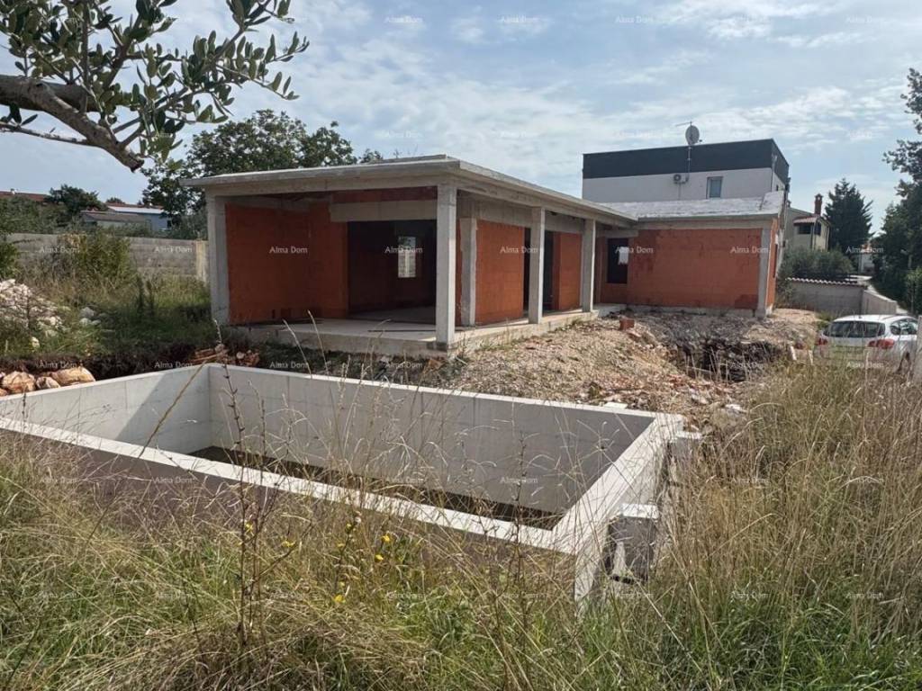We are selling a single-story house with a pool, which is currently in the shell-and-core phase.
