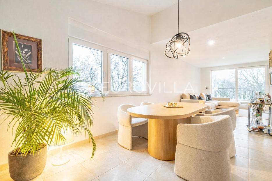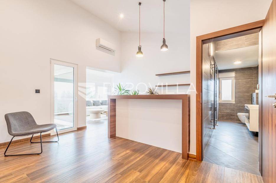 Srebrnjak, prekrasan dvoetažan peterosoban penthouse zatvorene površine 197,24 s dvije terase 15,04 i 7,75 m2 na 2. katu i potkrovlju odlične zgrade izgrađene 1997. godine s ukupno pet stanova, armirano betonska gradnja i cigla. Pripada mu garaža i vanjsko parkirno mjesto. Ukupno obračunski netto korisna površina 215,88 m2.Prva etaža: ulazni hodnik, prostrani dnevni boravak s blagovaonicom otvorenog tlocrta i izlazom na ne natkrivenu terasu 15,04 m2 , kuhinja s ostavom, tri spavače sobi i dvije kupaonice, vešeraja zatvorene površine 121,78 m2. Druga etaža (potkrovlje): ulazni prostor, spavača soba s garderobom, dnevni boravak s izlazom na natkrivenu terasu 7,75 m2 i garderoba zatvorene površine 71,90 m2.Prodaje se potpuno namješten i opremljen. Centralno etažno grijanje, podno grijanje, klimatiziran. Stan je potpunosti renoviran prilikom, uređenja korišteni samo najbolji materijali i oprema.Nalazi se na izvrsnoj lokaciji u neposrednoj blizini svih sadržaja potrebnih za kvalitetno i mirno življenje.Za sve ostale informacije stojimo na raspolaganju.... Više na eurovilla.hr, ID: 101512