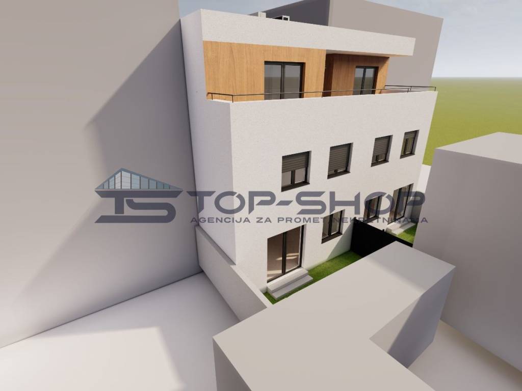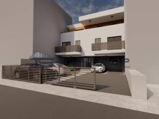 On the street side there are parking spaces and a small front garden, while the rear side is greened and completely private. Horticultural landscaping is planned with grass planting and indigenous plant species. Access paths for both pedestrians and vehicles will be paved/asphalted and equipped with urban furniture.