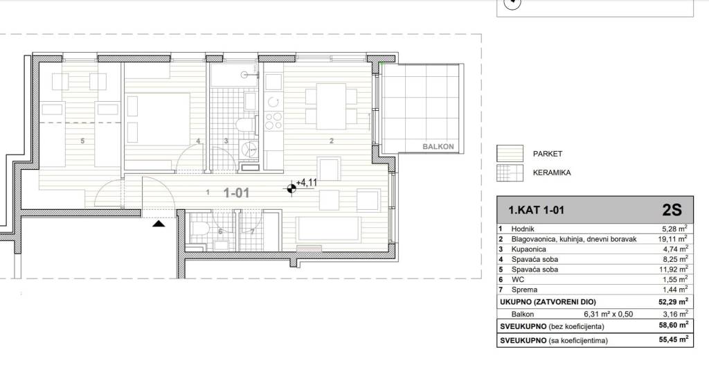 Split, Žrnovnica, moderan dvosoban stan s balkonom smješten u manjoj stambenoj zgradi u mirnoj ulici.Stan se nalazi na prvom katu zgrade te se sastoji od dvije spavaće sobe, kuhinje povezane s blagovaonicom, dnevnog boravka, hodnika, kupaonice, dodatnog WC-a i spreme. Iz blagovaonice je omogućen izlazi na natkirevni balkon. Površina zatvorenog stambenog prostora iznosi 52,29 m2, dok je površina balkona 6,31 m2.Riječ je o manjoj, moderno projektiranoj stambenoj zgradi u kojoj su svi ostali stanovi već prodani, što dodatno potvrđuje kvalitetu samog projekta i lokacije.Pristup zgradi osiguran je sa sjeverne strane, gdje se nalazi asfaltirani pristupni put koji vodi do privatnog nenatkrivenog parkirališta. Jedno vanjsko parkirno mjesto uključeno je u cijenu stana, uz mogućnost kupnje dodatnog parkirnog mjesta.U svim sobama i dnevnom boravku predviđene su instalacije za klima uređaje. Stan će biti opremljen komarnicima i električnim roletama.Završetak gradnje planiran je za ljeto 2027. godine. Posebna prednost ove nekretnine je mirno okruženje s vrlo malo prometa i buke. Zgrada se nalazi na sporednoj cesti bez izravnog izlaza na glavne prometnice, što omogućuje sigurnije i bezbrižnije okruženje za igru djece u neposrednoj blizini zgrade.U neposrednoj blizini nalazi se rijeka Žrnovnica, uz koju se proteže popularna šetnica koja vodi sve do mora i prekrasnog Strožanca, poznatog po raznovrsnim sadržajima za rekreaciju i svakodnevni život. Lokacija je posebno pogodna za obitelji jer se u blizini nalaze svi važni sadržaji poput trgovine, vrtića, osnovne škole, pekarnice, konjičkog kluba i brojnih drugih usluga.Za dodatne informacije slobodno nam se obratite.... Više na eurovilla.hr, ID: 608589