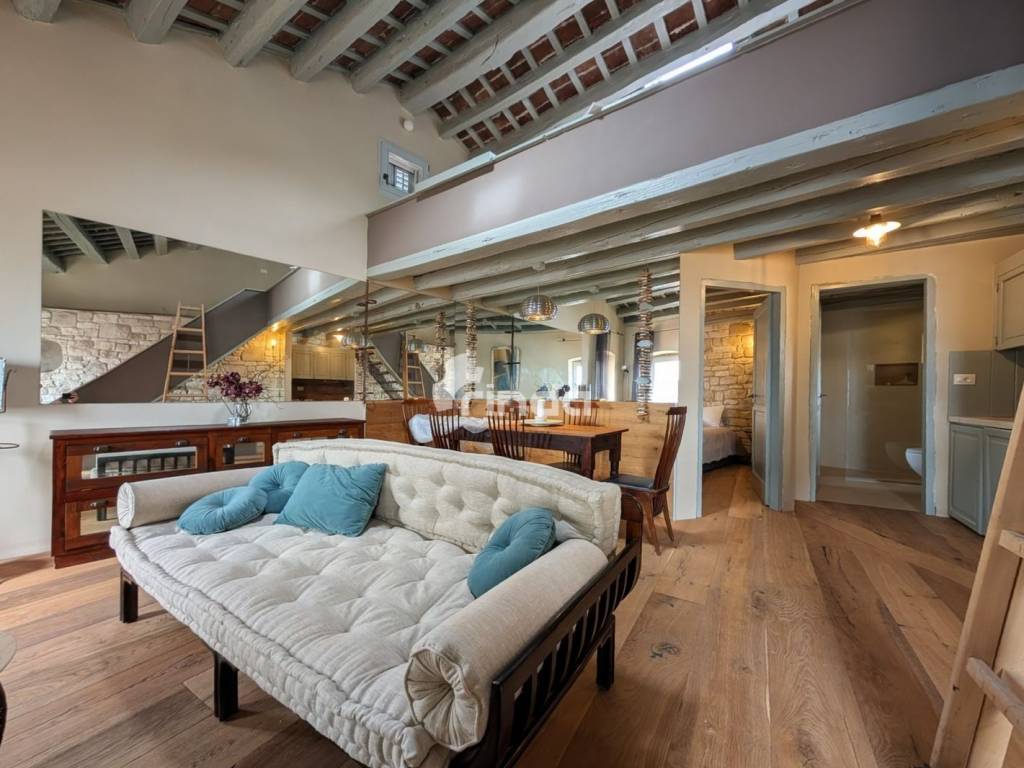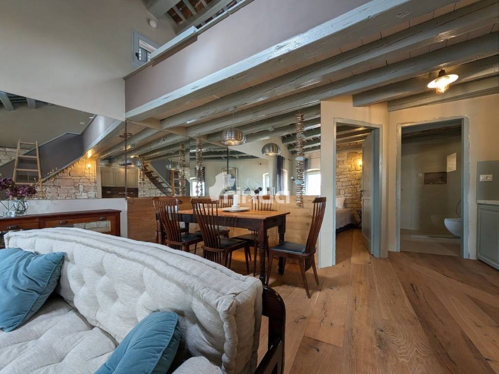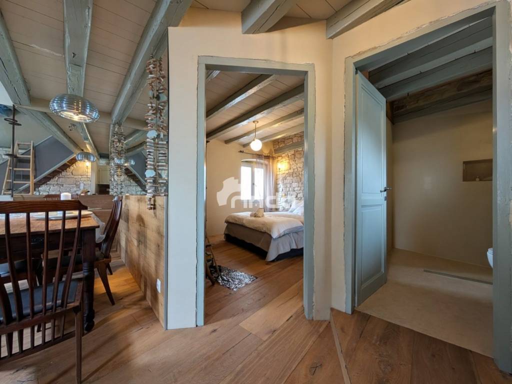In the very heart of the historic core of Rovinj, in one of the most desirable locations on the Adriatic, this charming two-story apartment is for sale, featuring a beautiful sea view and perfect southern orientation. This is a rare property that combines an authentic Istrian atmosphere with the comfort and aesthetics of a top-quality renovation. Main advantages • Exclusive location – in the pedestrian zone of the old town, just a few steps from the sea • Sea view and abundant natural light thanks to southern orientation • Two-story layout with clearly separated day and night areas • Authentic ambiance of old Rovinj with preserved historical elements • Exceptional quality of materials and equipment – a rarity in the old town core Layout and areas • Total area: 74 m2 • 2 bedrooms • 1 bathroom • Spacious living room with kitchen and dining area • Upper floor as an intimate relaxation zone Renovation and equipment details (premium standard) The apartment has been completely renovated using high-quality materials and equipment, with an emphasis on functionality, aesthetics, and durability. Kitchen and living area • Custom-made kitchen with Smeg appliances • Decorative glass element with lighting and ornamental stones • Fully functional fireplace • Sofa set upholstery handmade in Italy • All materials and furniture imported from Italy Bedrooms and attic • Pull-out TV mechanism in the attic • USB and electrical outlets by both beds • LED lighting integrated into the ceiling • Floors and cladding made of Listone Giordano wood • Large antique wardrobe, carefully restored and integrated into the space Bathroom and installations • Sanitary ware and shower equipment from renowned manufacturers • Floor and cladding made of Istrian stone • LED lighting in the shower • Combined washer-dryer connected directly to the drain • Pre-installation for air conditioning in all zones (bedroom, living room, central mezzanine) Authentic elements and finishing • Preserved original wall structure of the building (circa 1200) • Kerakoll resins and paints • Mosquito nets on the windows • Designer lighting: Flos, Artemide, and other brands