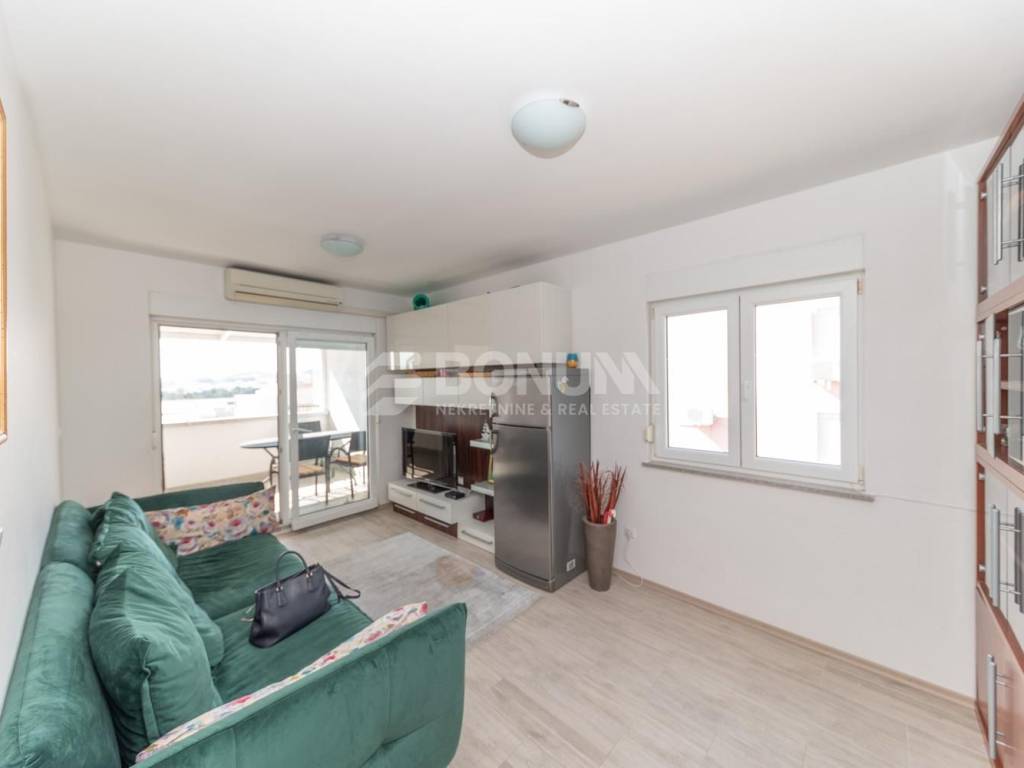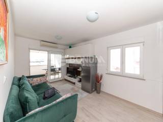 The apartment in Vodice is located in the attic of a residential building and has a total area of 35.67 m². It consists of a dining area connected to the kitchen and living space, one bedroom, a hallway, a bathroom, and a covered terrace.