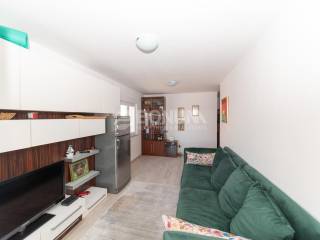 The living area is bright and functionally organized, with access to a terrace that provides a pleasant outdoor space for relaxation. The kitchen is practically positioned next to the dining area, allowing a good flow of the space. The bedroom is separate and spacious enough for a double bed and wardrobe, while the bathroom is equipped with all necessary amenities.