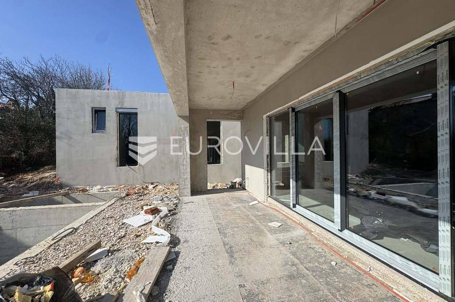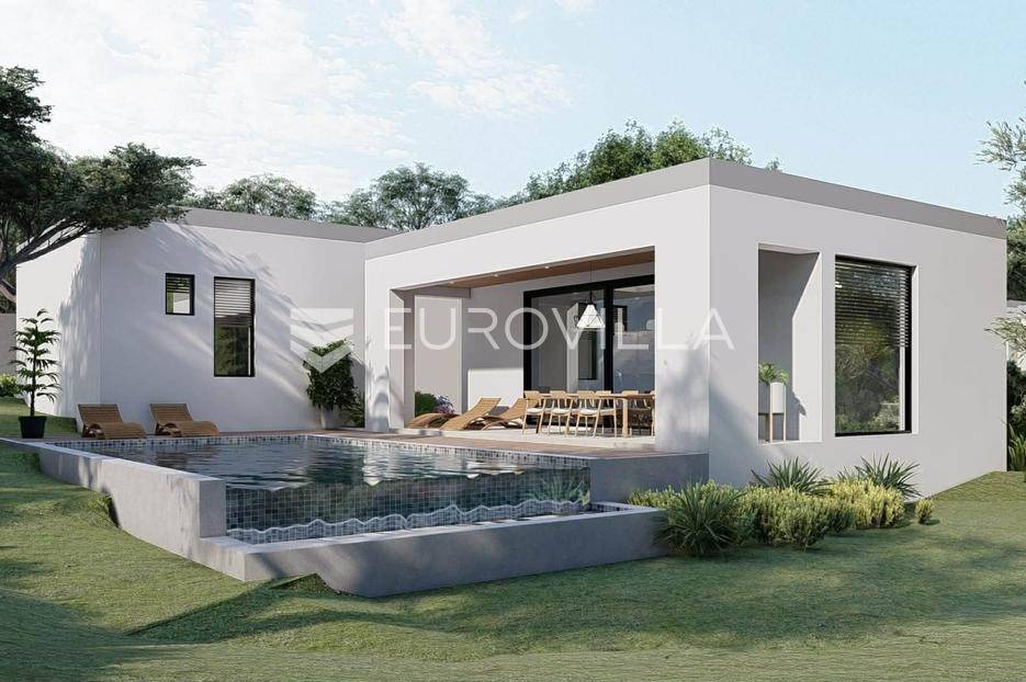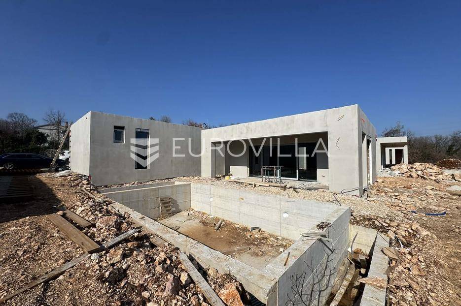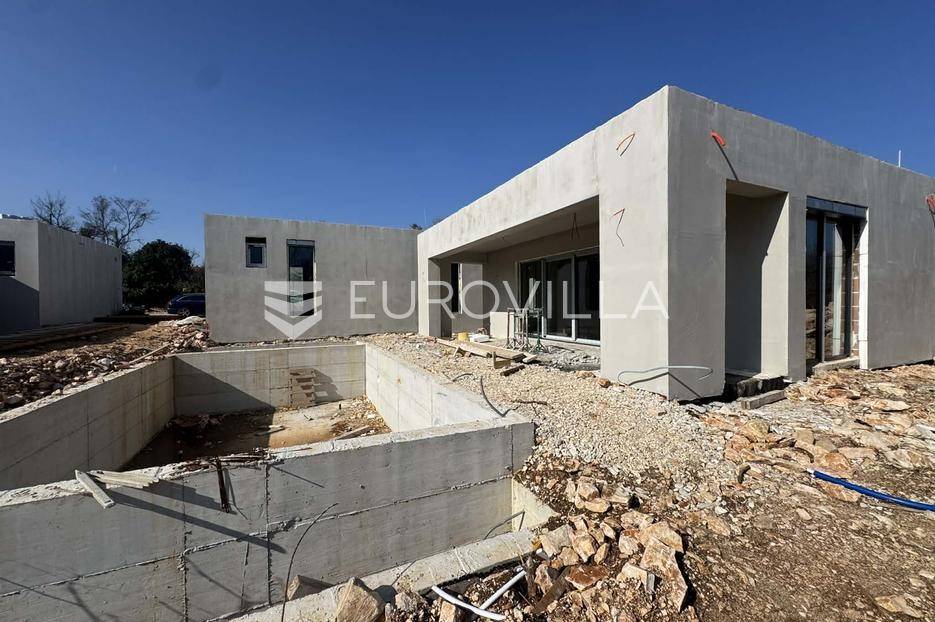 Na prodaju je moderna kuća u izgradnji, smještena na samom rubu naselja i okružena zelenilom. Smjestila se na prostranoj parceli površine 700 m2, pružajući idealan spoj privatnosti, tišine i dobre povezanosti sa svim potrebnim sadržajima.Kuća je projektirana kao prizemnica ravnog krova, s naglaskom na funkcionalnost i suvremeni način života. Pažljivo osmišljen raspored prostora nudi ulazni hodnik, vešeraj, gostinjski WC, prostrani open space dnevni boravak povezan s kuhinjom i blagovaonicom ukrašen velikim staklene stijenama koje omogućuju obilje prirodnog svjetla, zatim tri spavaće sobe od kojih svaka ima vlastitu kupaonicu.U uređenom dvorištu posebno se ističe preljevni bazen površine 45 m2, koji će zasigurno postati omiljeno mjesto za osvježenje i opuštanje tijekom toplih dana. Uz sve to, na raspolaganju su i dva privatna parkirna mjesta.Vila je trenutno u fazi izgradnje, a završetak radova planiran je tijekom 2026. godine, što budućem vlasniku pruža mogućnost eventualnih prilagodbi i personalizacije u završnim fazama uređenja.Ova nekretnina predstavlja odličnu priliku za sve koji traže moderan dom za odmor, mirno mjesto za život u prirodi ili sigurnu investiciju za turistički najam.Za više informacija slobodno nas kontaktirajte.... Više na eurovilla.hr, ID: 224361