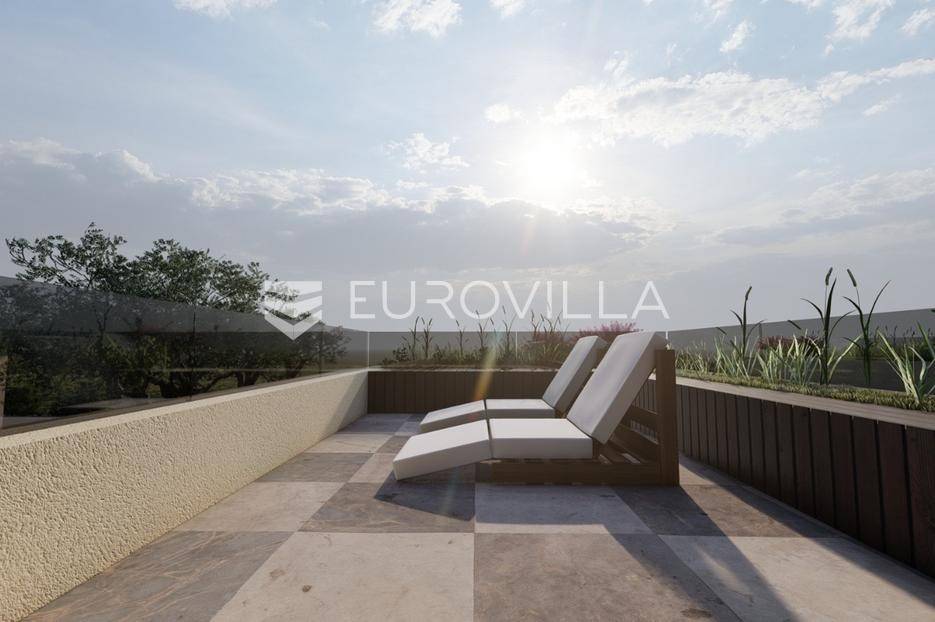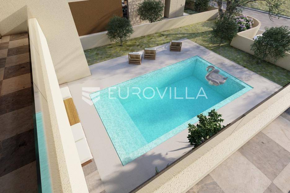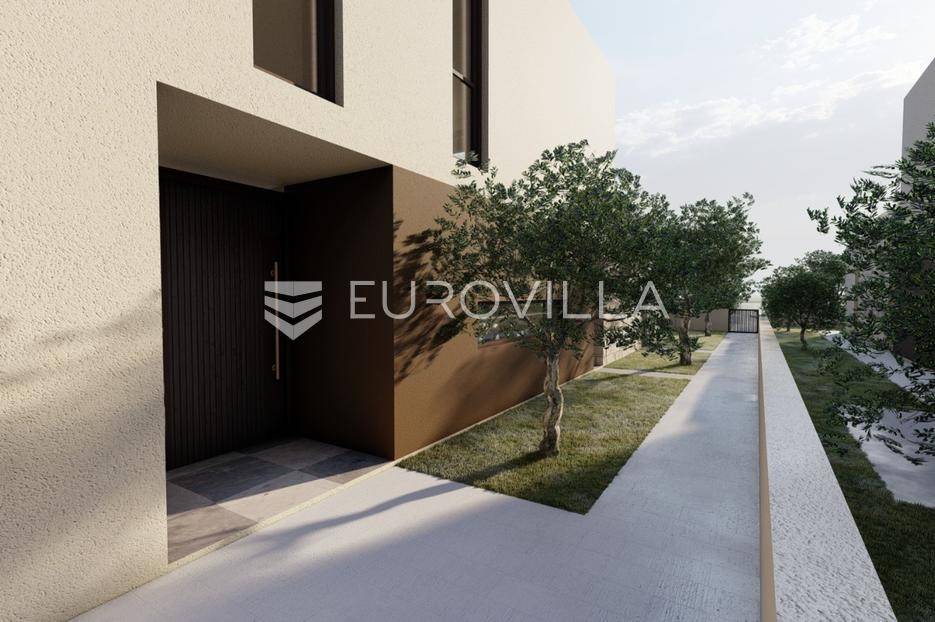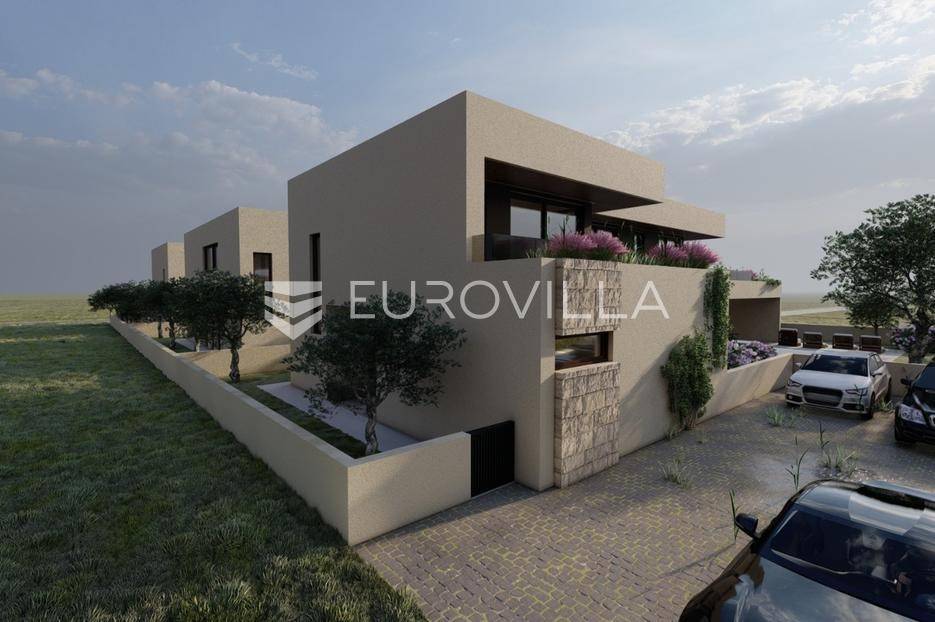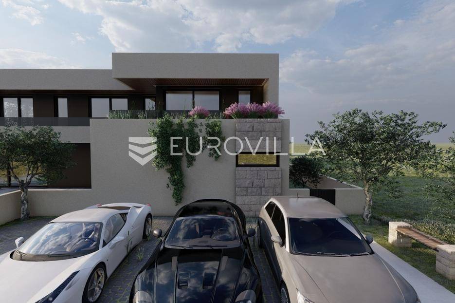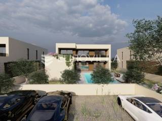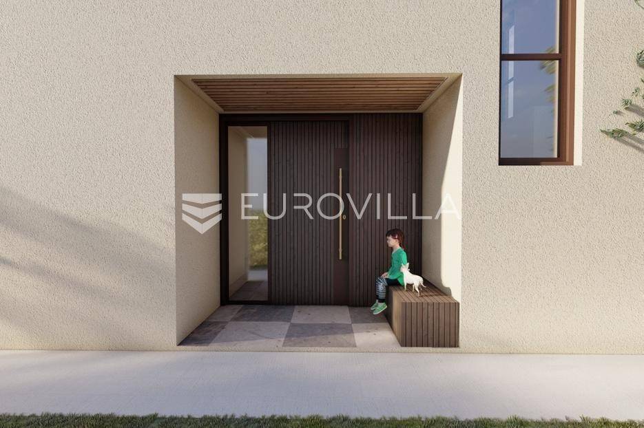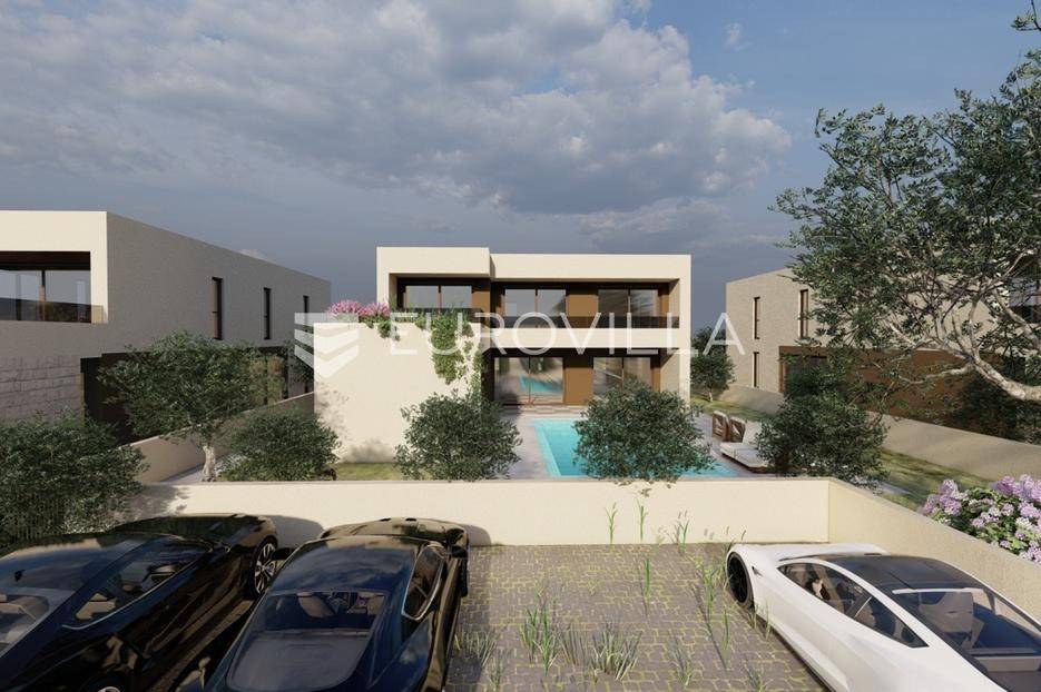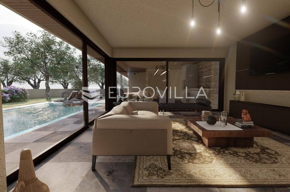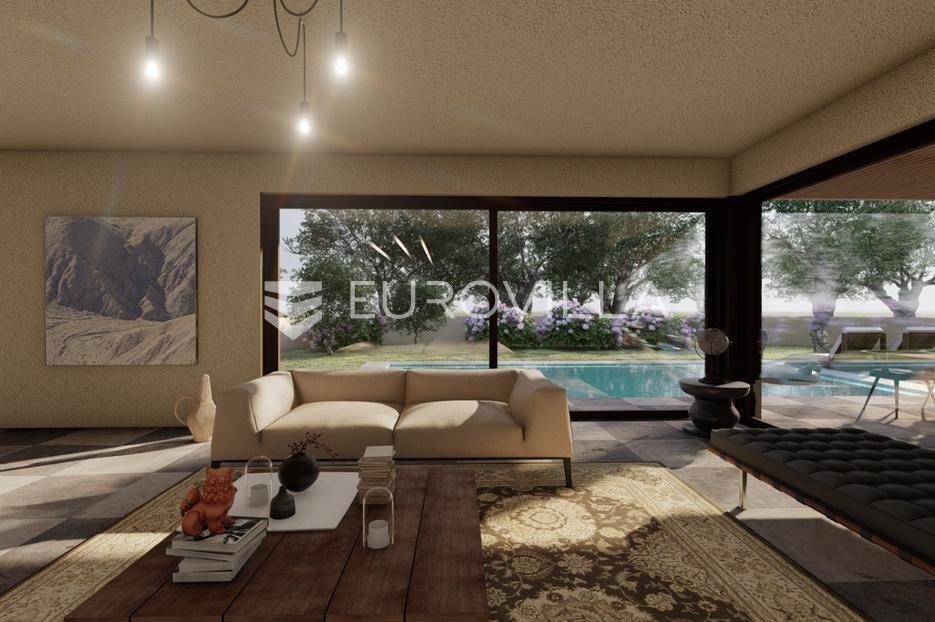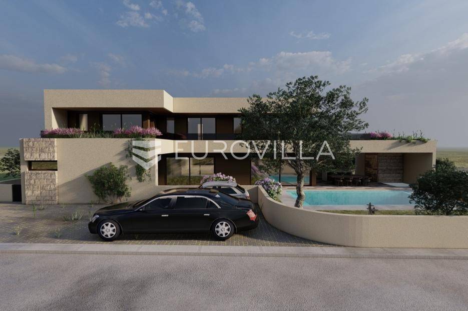 U mirnom i zelenom dijelu mjesta Murvica, svega nekoliko minuta vožnje od Zadra i mora, smješten je projekt moderne vile vrhunske arhitekture koji savršeno spaja suvremeni dizajn, funkcionalnost i mediteranski način života.Vila je projektirana na parceli površine približno 639 m², dok ukupna bruto razvijena površina objekta iznosi približno 240–250 m². Prostor je pažljivo osmišljen kako bi pružio maksimalnu privatnost i otvorenost prema vanjskim zonama boravka.U prizemlju se nalazi impresivan open space dnevni prostor s kuhinjom i blagovaonicom površine oko 60 m², s velikim staklenim stijenkama koje prostor prirodno povezuju s natkrivenom terasom i vrtom.Dodatno se u prizemlju nalaze:ulazni prostorgarderobagostinjski WCvešeraj / ostavaVanjski dio vile zamišljen je kao privatna zona odmora s:bazenom dimenzija približno 3,5 × 8 mprostranom natkrivenom ljetnom kuhinjom i blagovaonicomwellness zonom sa saunom i jacuzzijemuređenim vrtom i zelenim površinamaNa katu su smještene prostrane spavaće sobe s pripadajućim kupaonicama i garderobama, s izlazima na natkrivene i nenatkrivene terase koje pružaju pogled na okolni krajolik i zelenilo.Dodatne značajkemoderna arhitektura ravnih linijavelike staklene stijene i puno prirodnog svjetlauređene zelene površine oko objektaviše parkirnih mjesta na parcelimirna i diskretna lokacija u blizini ZadraProjekt predstavlja izvrsnu kombinaciju suvremenog dizajna, privatnosti i komfora te je idealan za cjelogodišnji boravak ili luksuzni mediteranski odmor.Za dodane informacije i obilazak lokacije stojimo na rapolaganju... Više na eurovilla.hr, ID: 805396