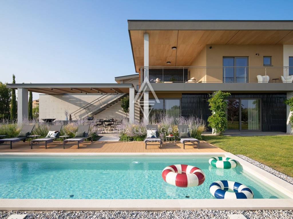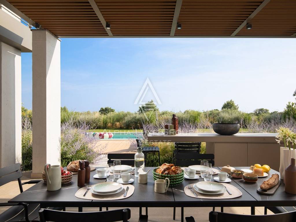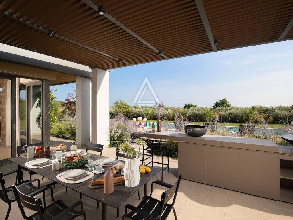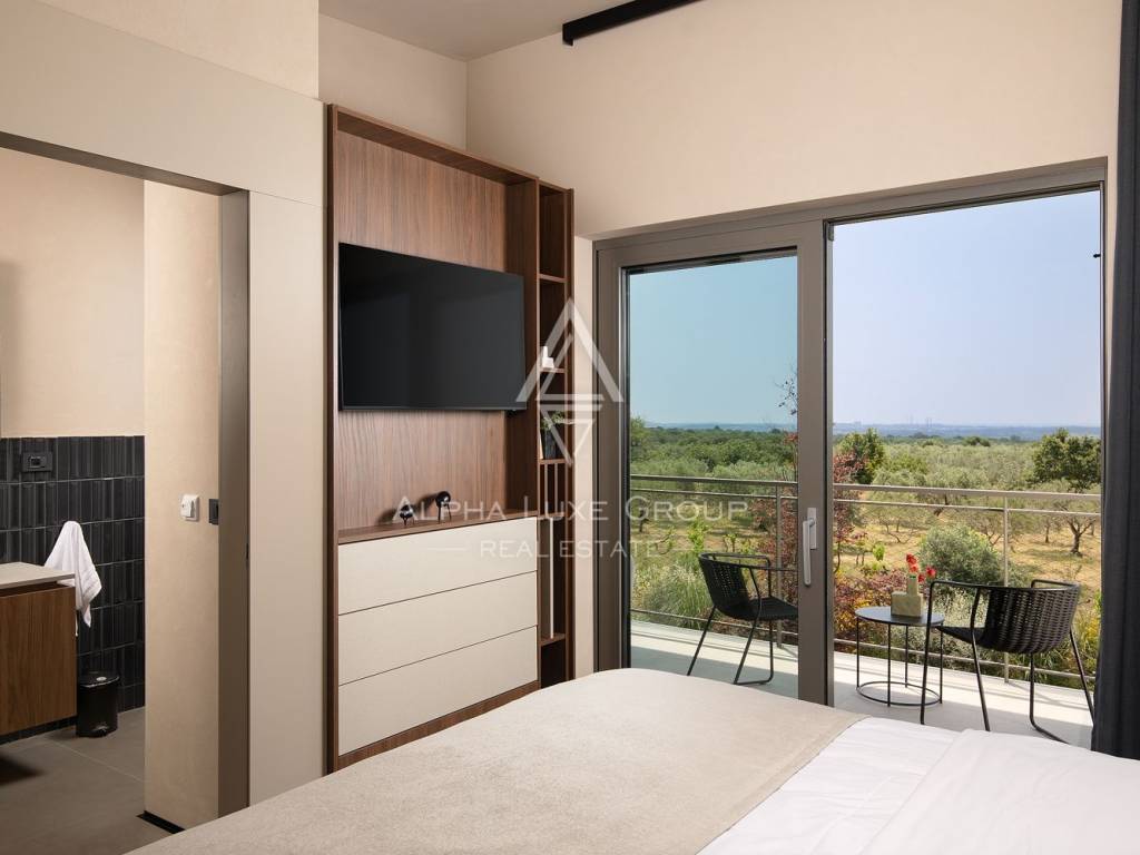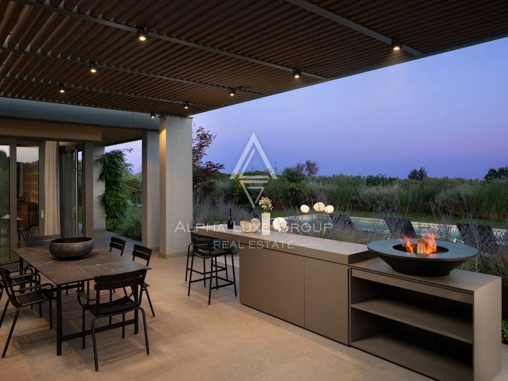The property stands out with its open view of the sea and the Brijuni Islands, as well as the picturesque vineyards and olive groves that surround the area. The carefully landscaped garden with a swimming pool provides a peaceful and private environment, ideal for relaxing and enjoying the mild Mediterranean climate.