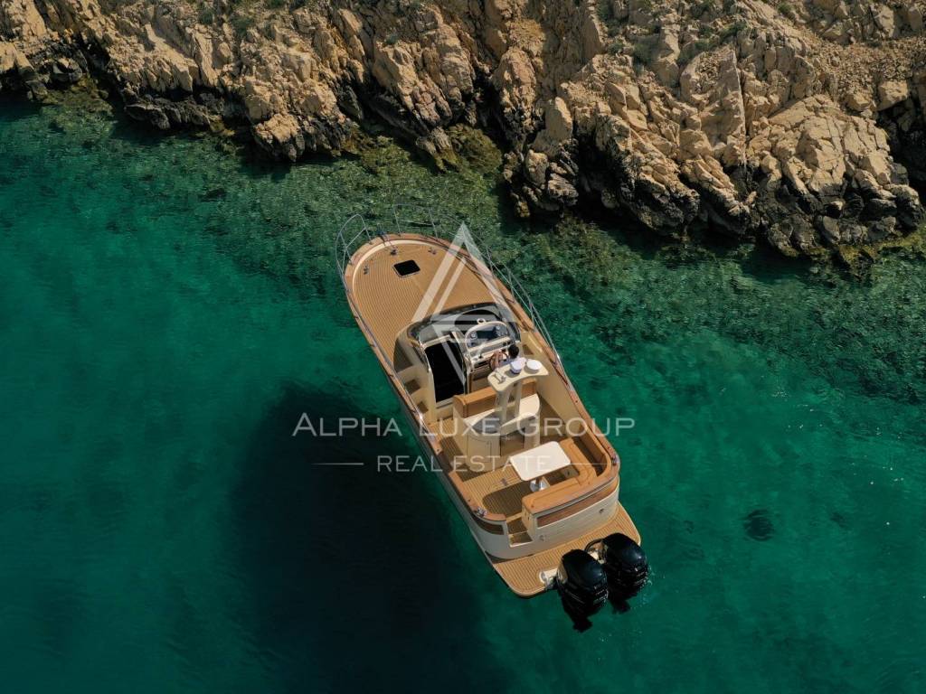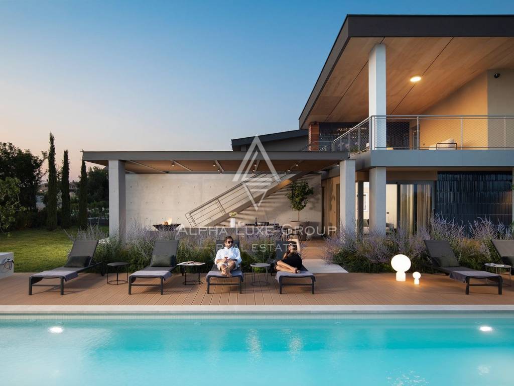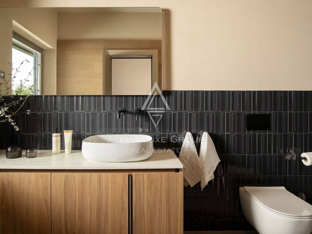 This contemporary villa is situated on a spacious plot of 1,363 m² and offers 246 m² of internal living space spread over two floors, with an additional 162 m² of terraces. The location is very practical as there are shops, restaurants and other necessary amenities nearby, while the beaches are only a ten-minute drive away.