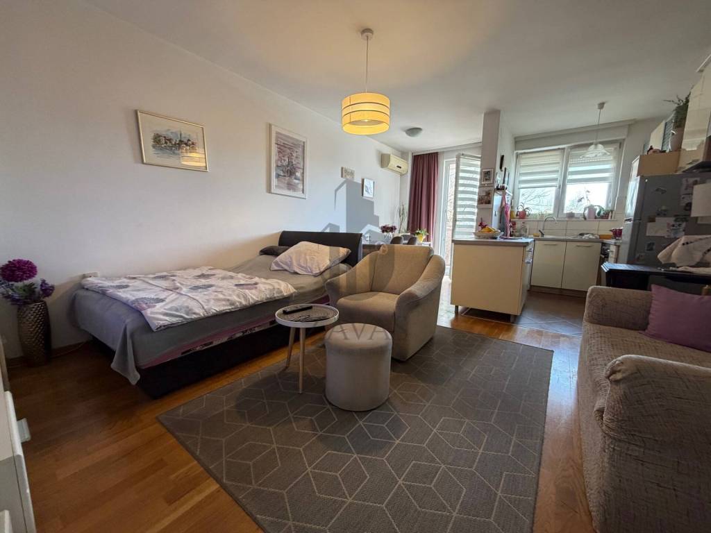 Stan je funkcionalnog rasporeda te se sastoji od ulaznog hodnika, kupaonice, prostranog dnevnog boravka povezanog s kuhinjom i blagovaonicom te loggie koja pruža dodatni prostor za opuštanje.