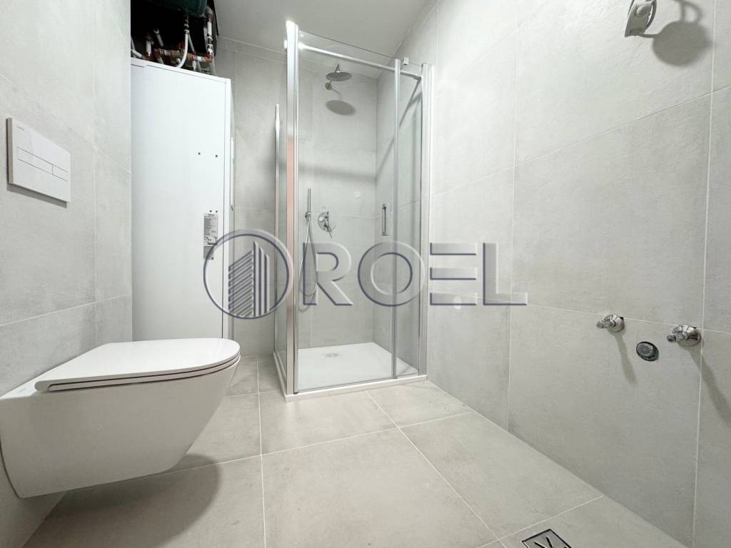 The apartment's equipment includes aluminum joinery with triple-glazed windows, electric blinds, first-class parquet, first-class ceramics and quality sanitary ware from renowned manufacturers. The heating is gas central heating, with underfloor heating in the bathroom and an additional heat pump that enables energy efficiency.