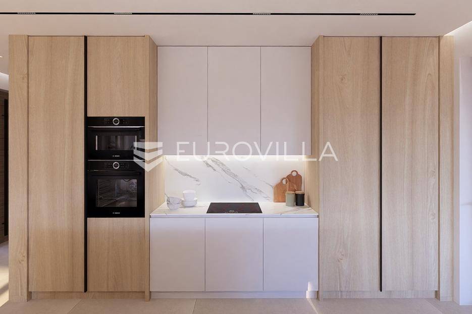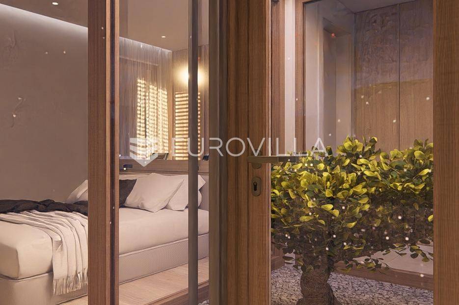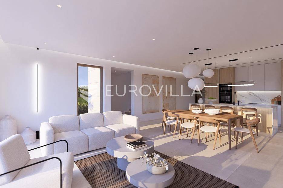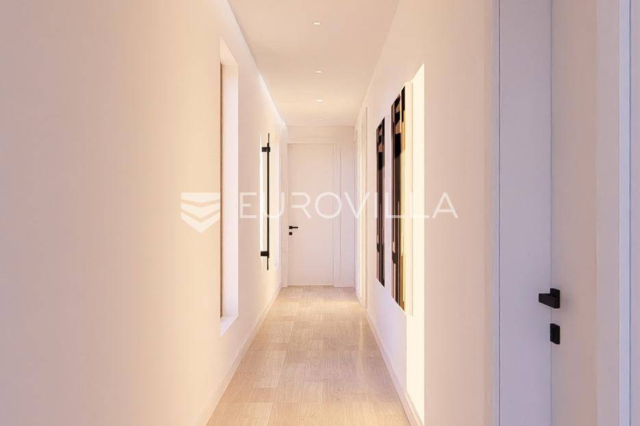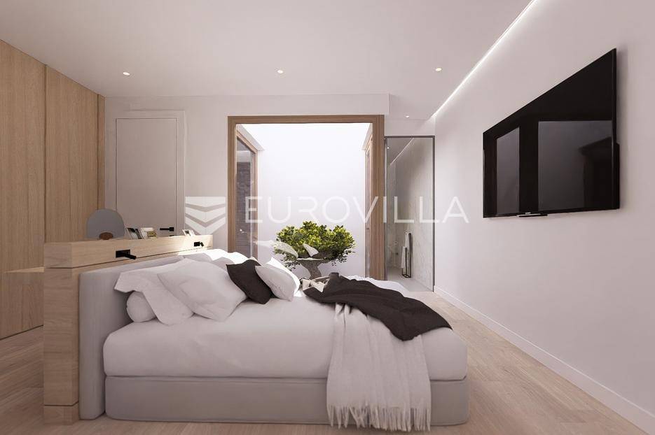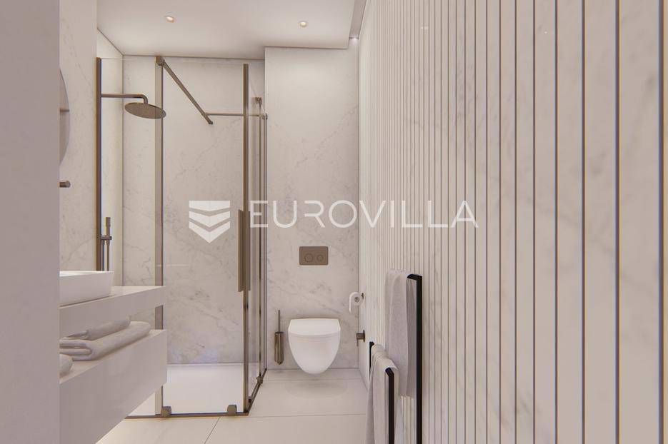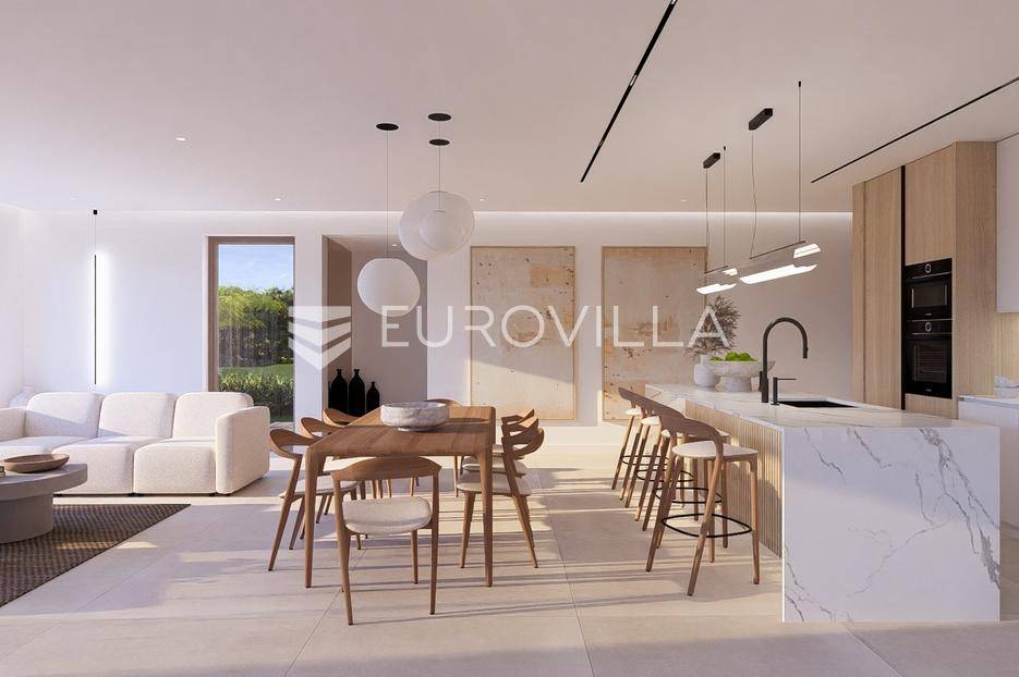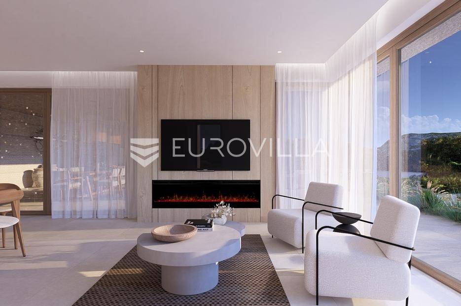 Primošten, moderna vila s bazenom i pogledom na more površine 314,1 m². Trenutačno je u izgradnji, te je planiran završetak do ljeta ove godine.Izgrađena na 2 etaže na parceli od 898 m². Sastoji se od prizemlja u kojem se nalazi dnevni boravak s kuhinjom i blagovaonicom, jedna spavaća soba s privatnom kupaonicom, toaleta i spremišta. Dnevni boravak se otvara na prostranu natkrivenu terasu s roštiljem. U dvorištu pokraj grijanog bazena nalazi se i pomoćni objekt u kojem je sauna, toalet i natkrivena terasa. Unutarnjim stepenicama dolazimo na kat gdje se nalaze još 3 spavaće sobe, od kojih svaka ima privatnu kupaonicu. Svaka spavaća sobe ima izlaz na lođu, te s lođe na veliku terasu.Vila je jako kvalitetno građena, te su korišteni vrhunski materijali. Na podovima je keramika u prizemlju i na terasama, a na katu je parket. Opremljena je podnim grijanjem u boravku, kuhinji i kupaonicama. Stolarija je drvo-aluminij, a fasada je kamena. Na krovu se nalazi fotonaponska elektrana, a cijelom kućom se daljinski upravlja preko smarthome sustava.Oko vile se prostire lijep vrt, te prostor za sunčanje. Pokraj vile nalaze se 4 parkirna mjesta, od kojih su dva natkrivena. Mikrolokacija vile je odlična, na jako mirnom mjestu, te je udaljenost od mora 1650 metara.Sve ostale informacije na upit.... Više na eurovilla.hr, ID: 554016