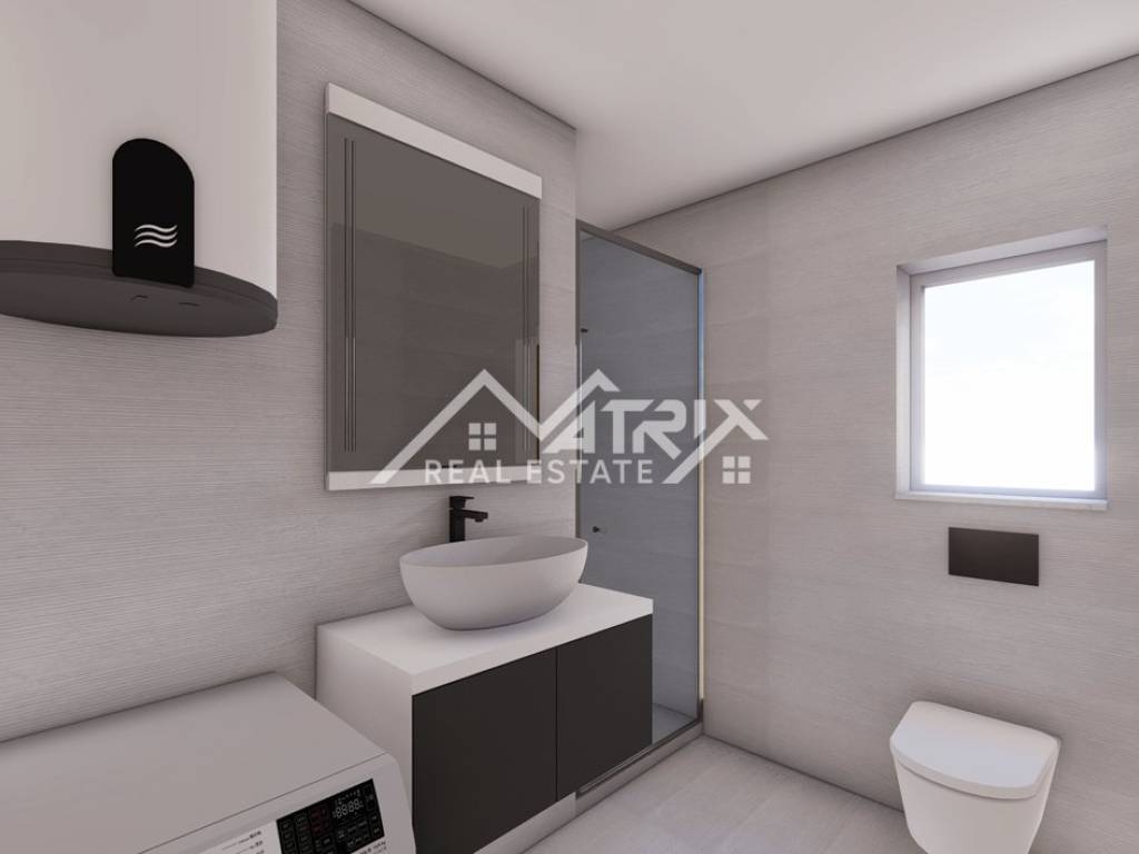 Construction and finishes are planned to a higher standard, with quality materials and equipment. Electric underfloor heating with thermostats is planned for the living room and bathroom, and an inverter air-conditioning unit is included for heating and cooling. First-class ceramic tiles and high-quality laminate flooring in the bedrooms are specified, with pre-sale buyers able to choose from several tile and laminate options. Security and fire-rated DIERRE entrance doors, modern interior doors with concealed hinges, multi-chamber PVC windows with a 5-year warranty, and electric roller shutters are planned. Bathrooms will feature high-quality fittings, including concealed cisterns.