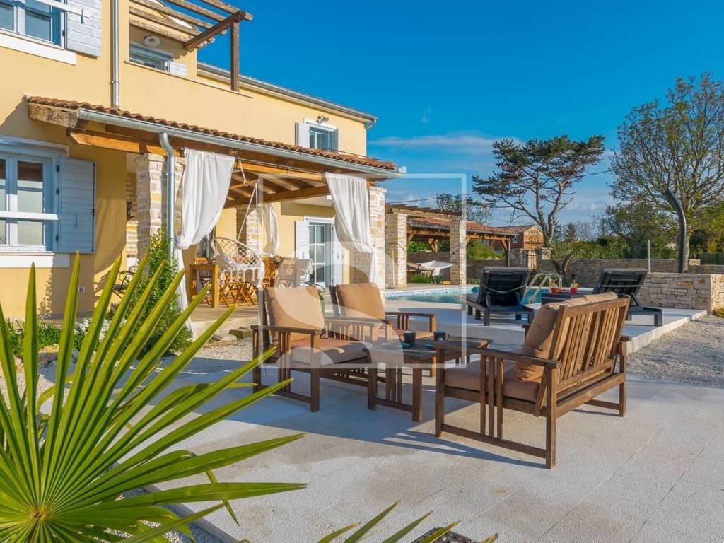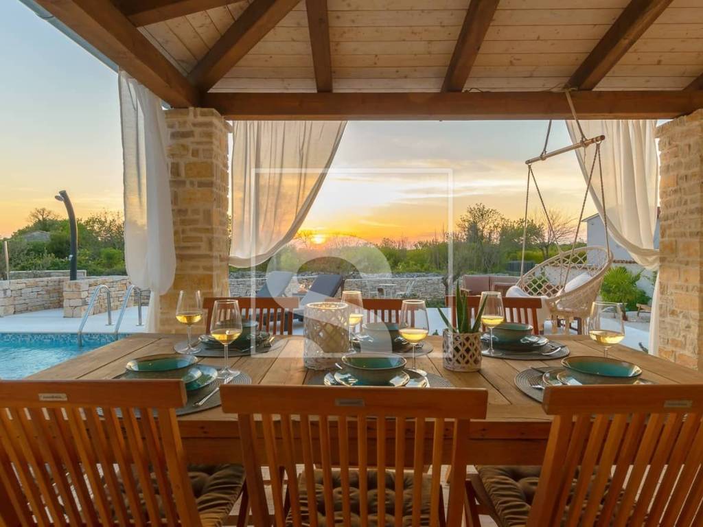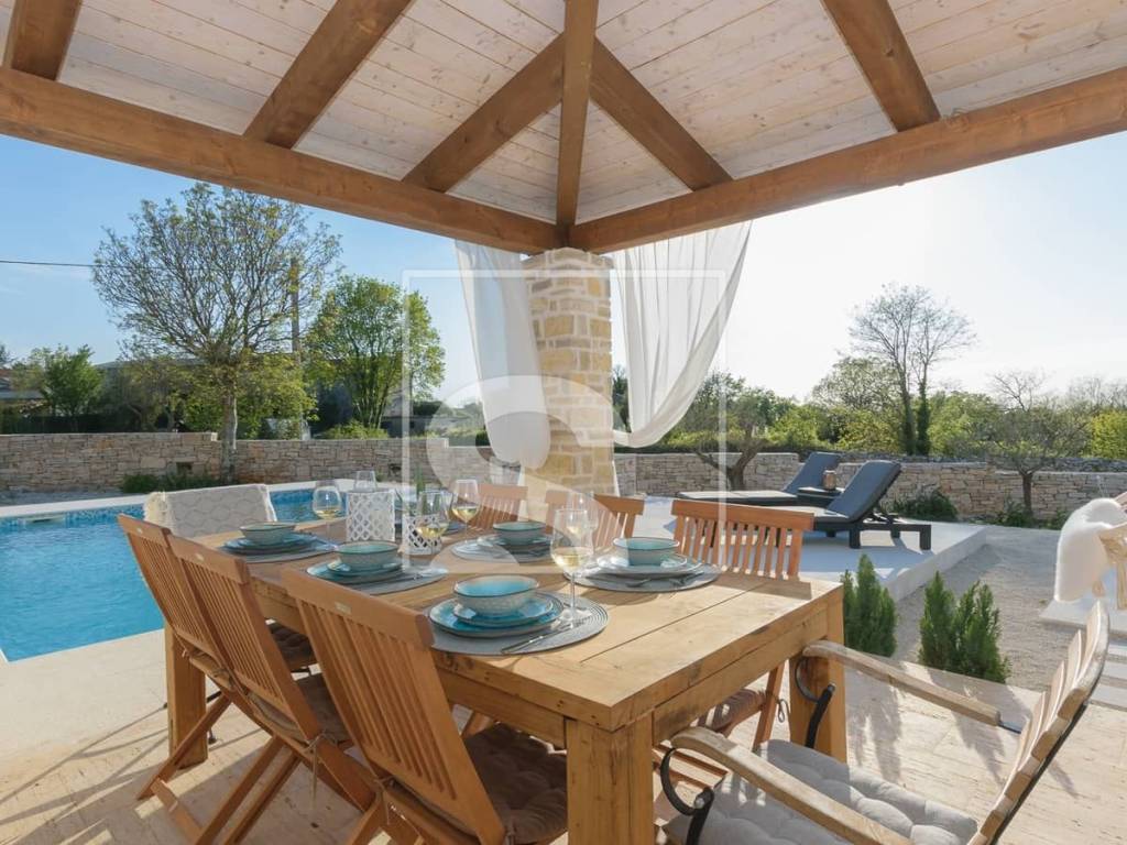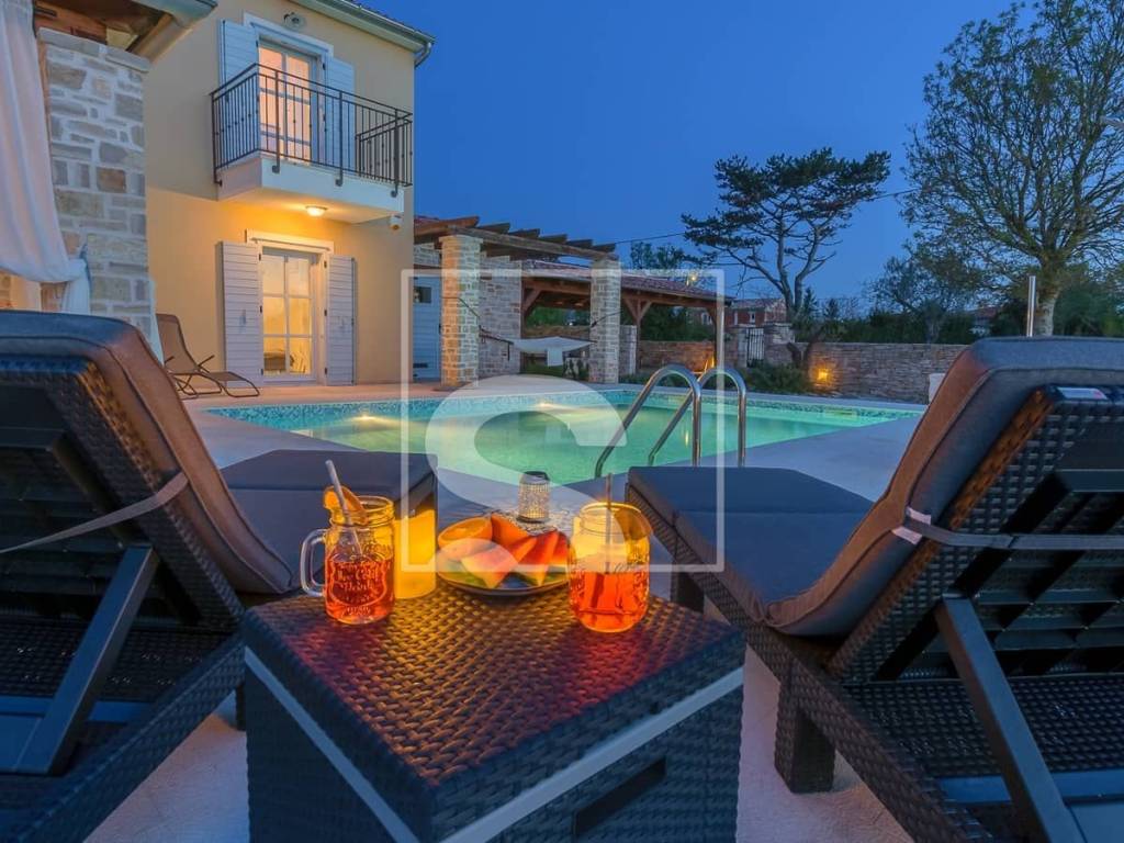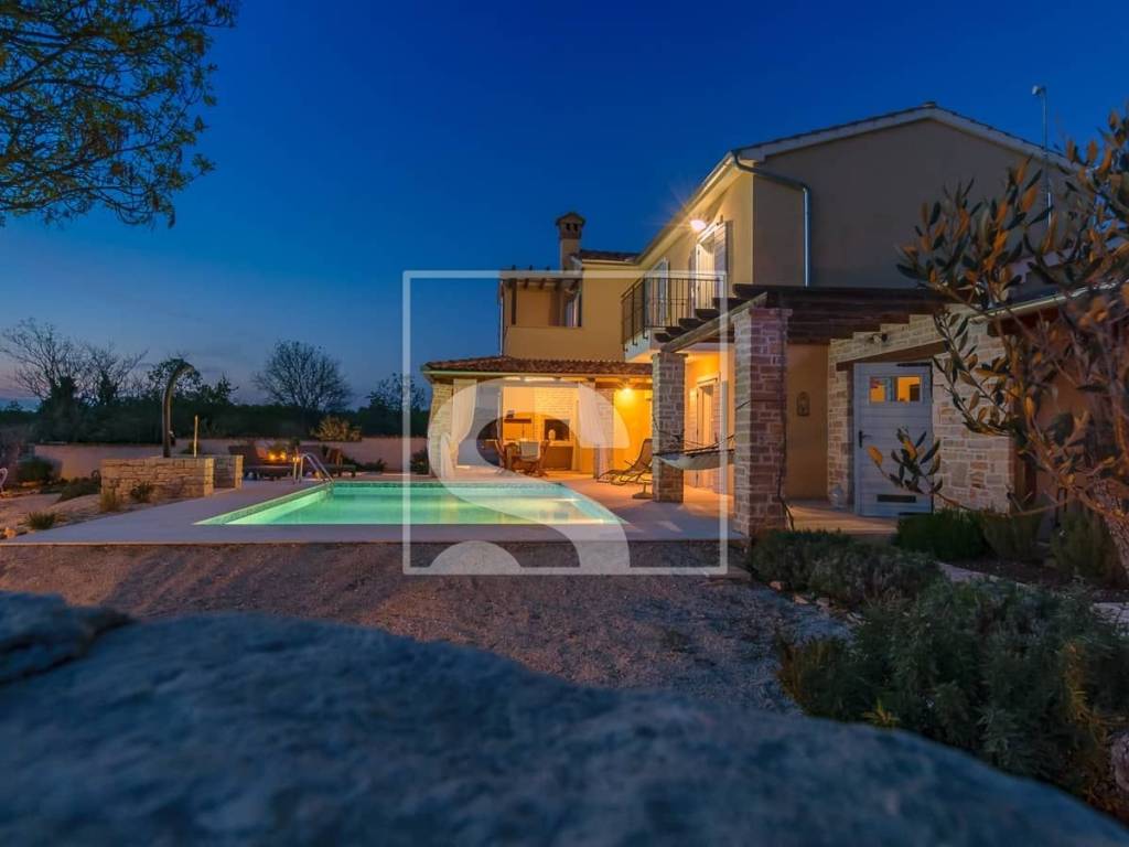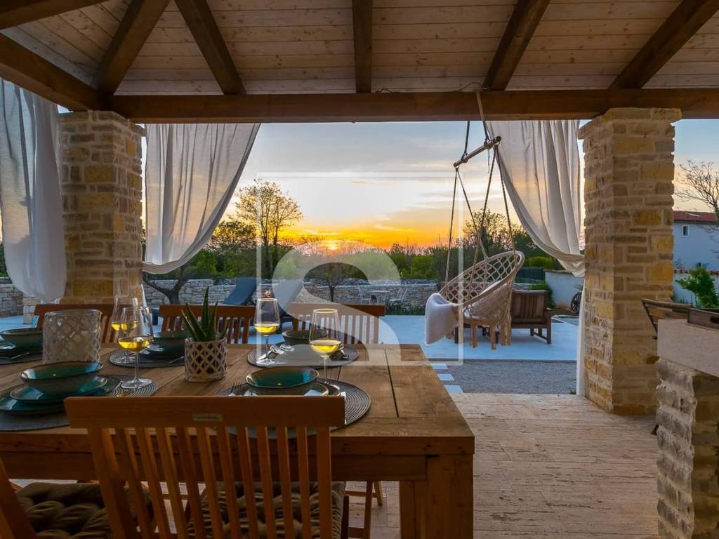 In the heart of southern Istria, this elegant villa perfectly combines rustic charm with contemporary aesthetics. Surrounded by greenery and the peaceful Istrian landscape, it offers an ideal balance between privacy and proximity to all essential amenities.