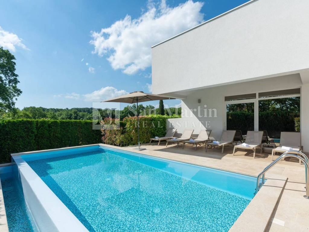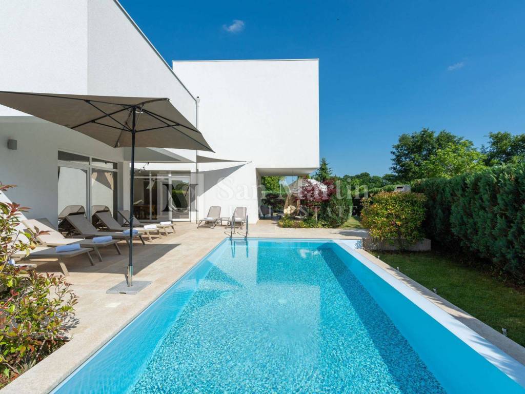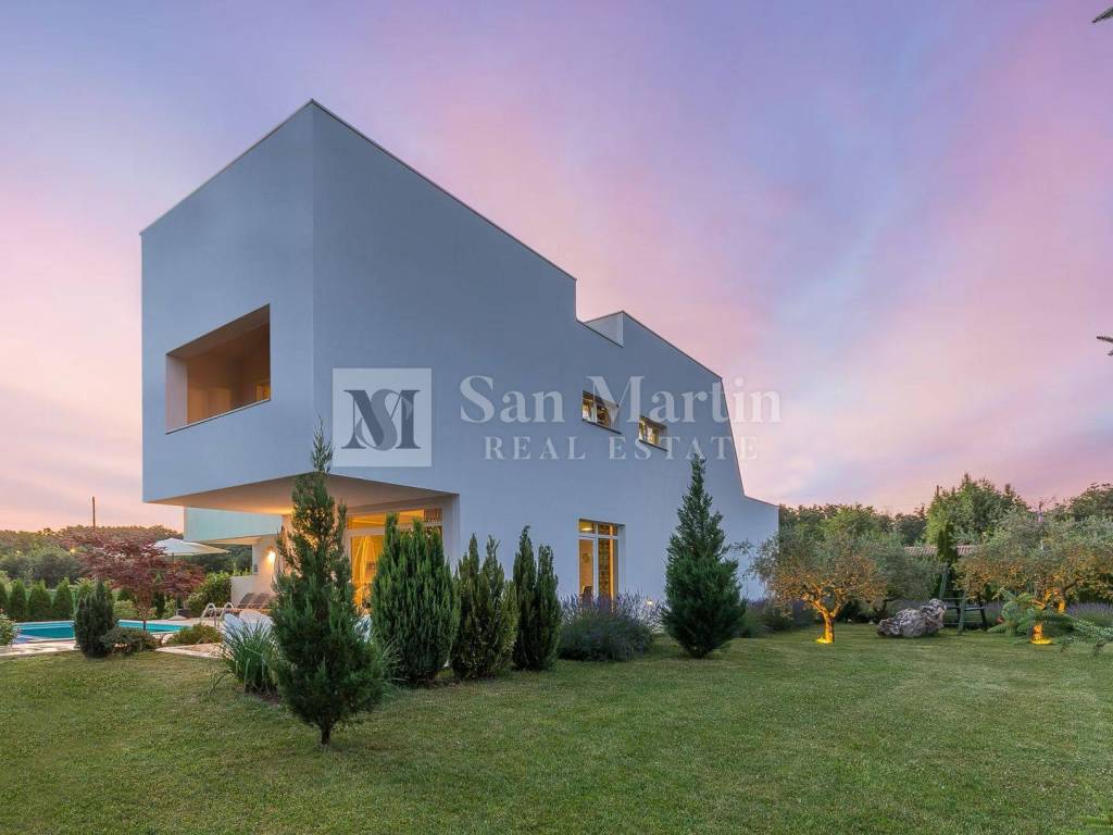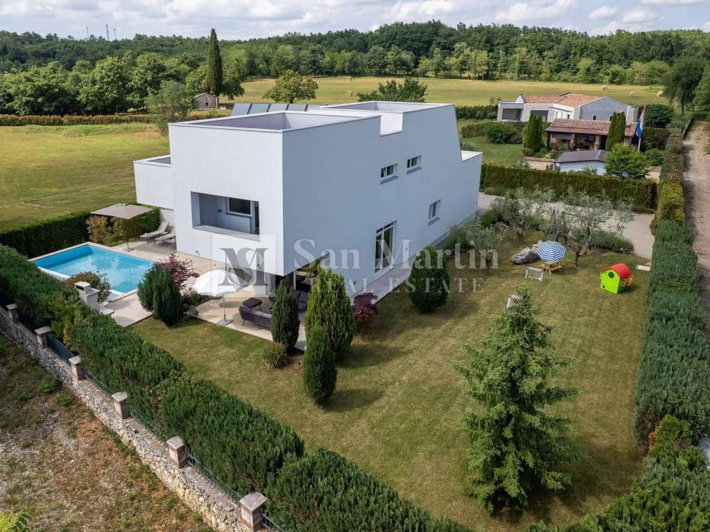 In a quiet and green part of central Istria, near Žminj, there is a modern villa that combines contemporary design, top-quality construction and complete privacy. Surrounded by nature and hidden from everyday noise, this property provides an ideal space for a relaxed and comfortable life.