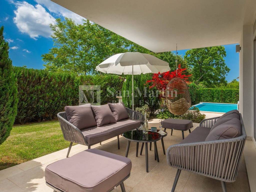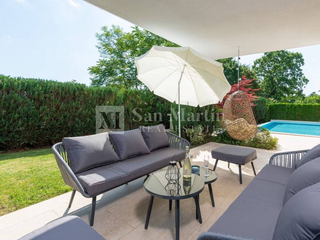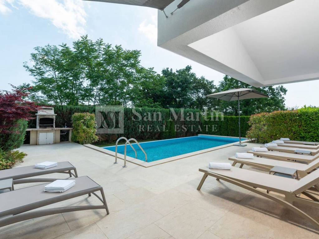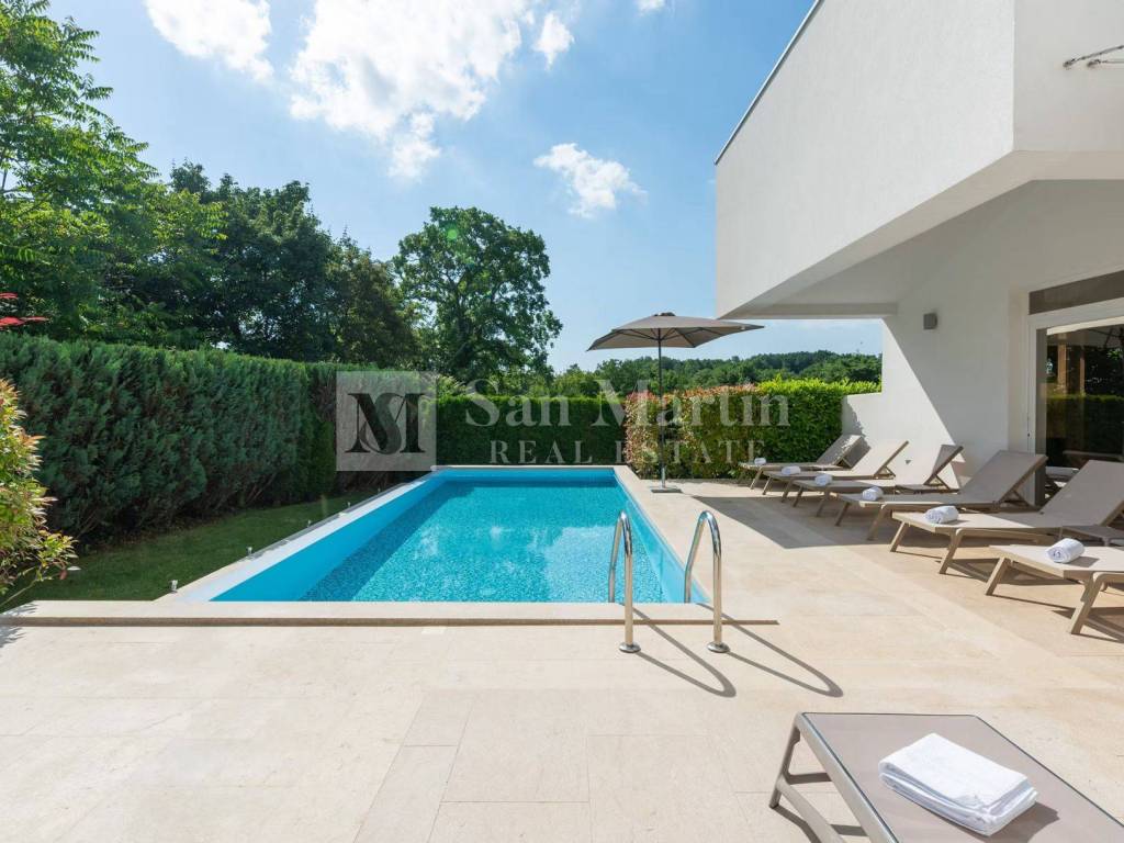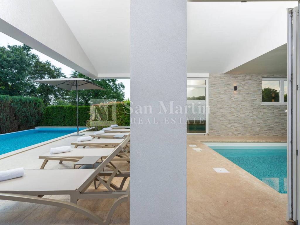 In a quiet and green part of central Istria, near Žminj, there is a modern villa that combines contemporary design, top-quality construction and complete privacy. Surrounded by nature and hidden from everyday noise, this property provides an ideal space for a relaxed and comfortable life.