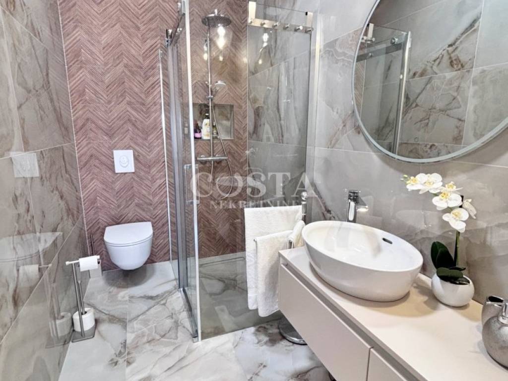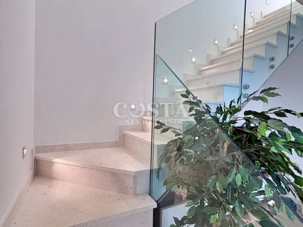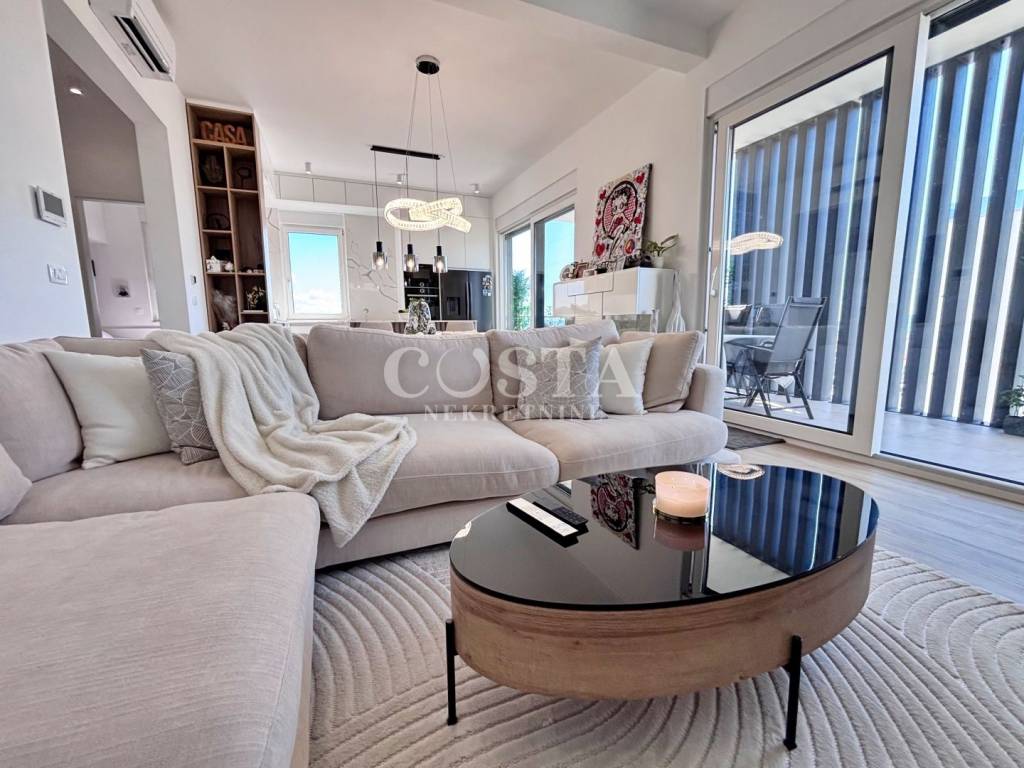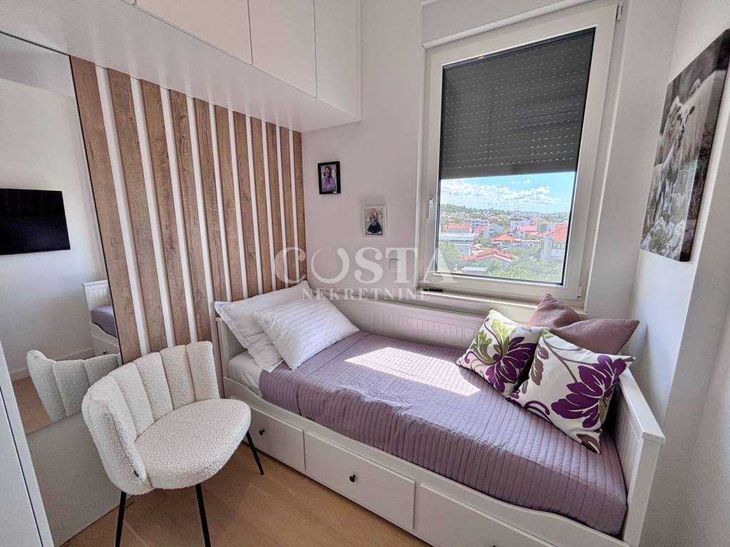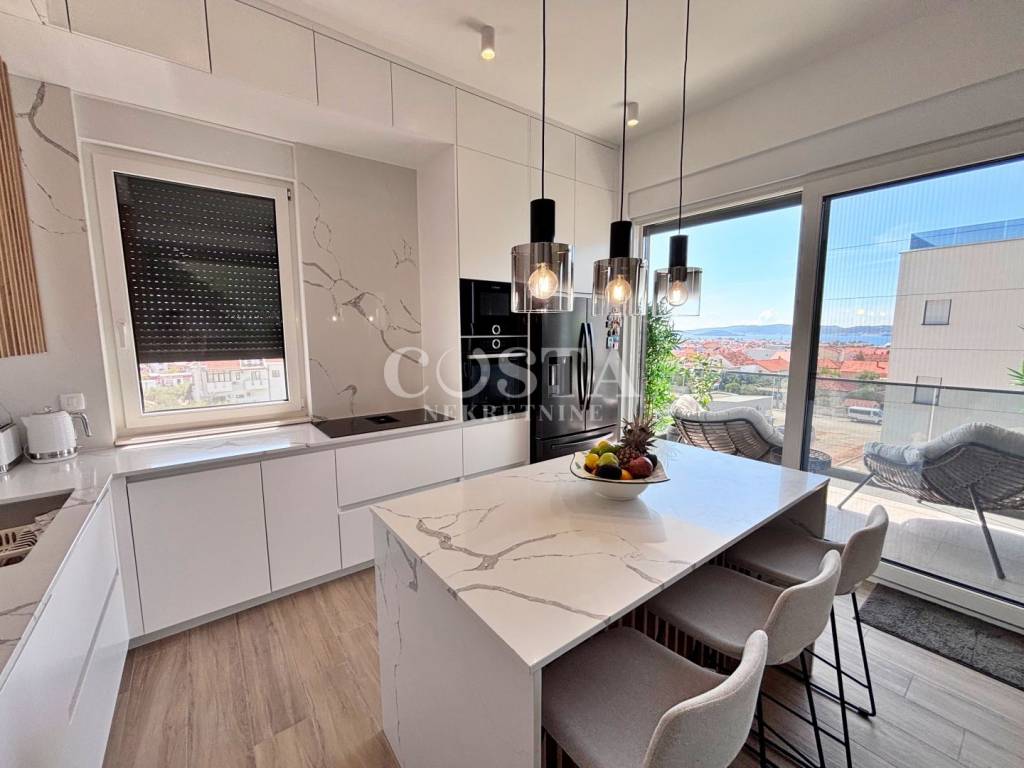 A penthouse with a sea view is for sale in Vidikovac in Zadar. This luxuriously furnished apartment is located on the third floor of a residential building with an elevator. With a living area of 118.82 m2, this fully air-conditioned apartment with underfloor heating consists of a living room, kitchen and dining room, three bedrooms, two bathrooms, a loggia and a terrace with a sea view.