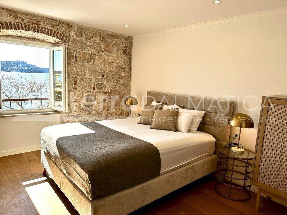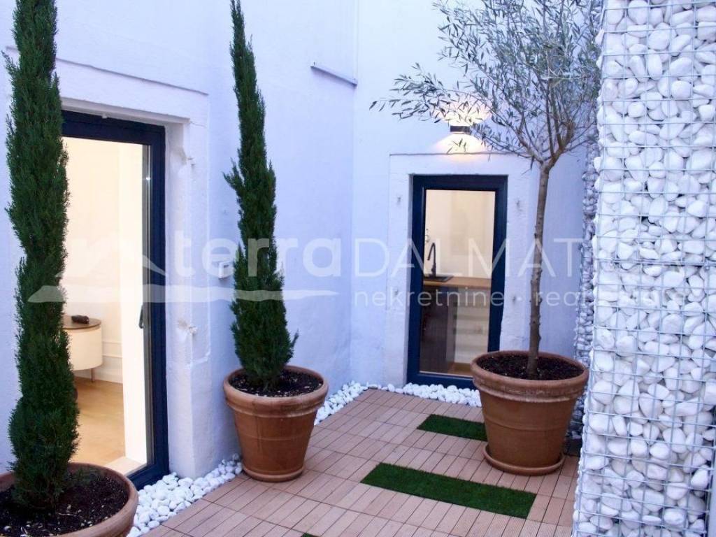 In the very center of Šibenik, with a breathtaking view of the Šibenik waterfront, the sea, and St. Anthony's Channel, a spacious and exclusively renovated apartment is for sale on the first floor of a small residential building. This property offers a unique combination of historical charm and modern comfort, ideal for those who wish to live in the heart of the city, surrounded by cultural and natural beauty. The apartment covers 150 m² and offers an extremely functional layout. It consists of an entrance area, a hallway, four spacious bedrooms, and three modern bathrooms. All bathrooms are equipped with underfloor heating and premium Italian ceramics, providing a sense of luxury and comfort. The air conditioning and ventilation system is centrally controlled, with each room having its own unit for optimal temperature regulation. The floors are covered with high-quality oak parquet, and during the renovation, brand-new beams were installed to enhance both stability and aesthetic value. The exterior carpentry is made of wood, including windows and the entrance door, while the interior shutters are aluminum, combining a traditional look with modern functionality. A special feature of this apartment is the beautiful inner atrium, which adds additional light and airiness to the space. The atrium has electricity and water connections, allowing it to be customized to personal needs—whether as a relaxation space, a meditation area, or even for installing a jacuzzi. The apartment has been fully renovated, with new electrical and plumbing installations, and the external staircase leading to it is exclusively used by this unit. Two kitchens and adapted installations allow easy division into two separate residential or business units—perfect for a combination of an apartment and an office or for rental purposes. Šibenik is a city with a rich history, known for its UNESCO-protected landmarks, stunning coastline, and vibrant cultural life. With top restaura