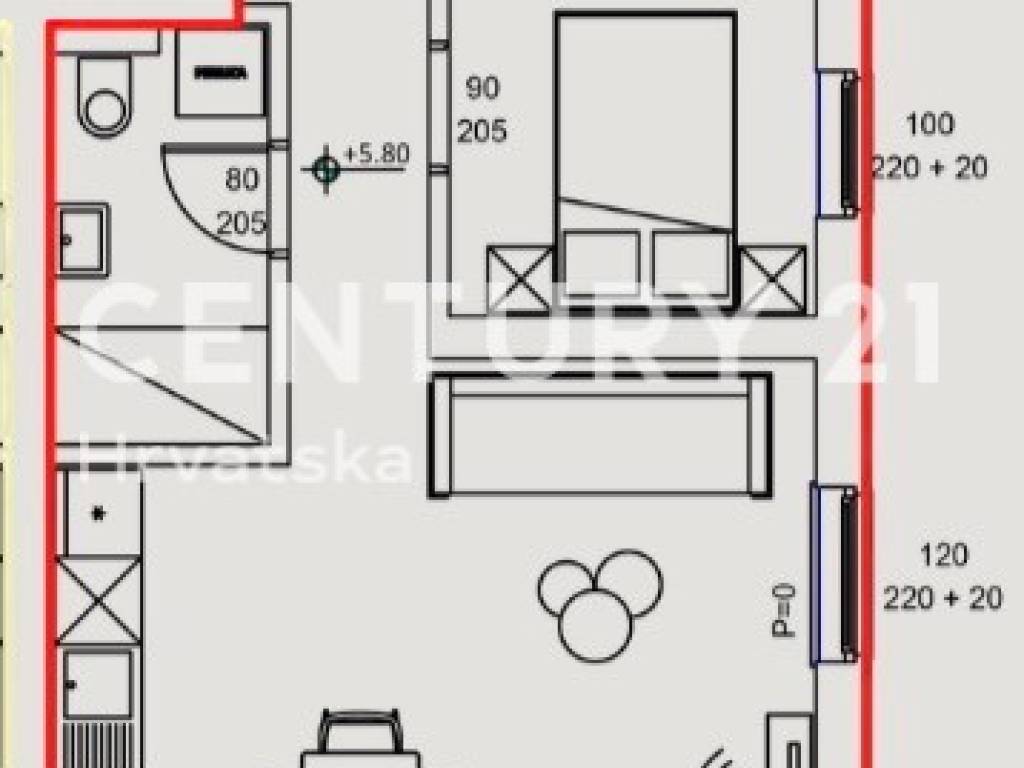 Stan je pažljivo projektiran kako bi se maksimalno iskoristio prostor te se sastoji od ulaznog hodnika, prostranog dnevnog boravka s kuhinjom i blagovaonicom u open-space konceptu, dvije spavaće sobe, moderne kupaonice te natkrivene loggie koja pruža ugodan prostor za opuštanje i boravak na otvorenom.