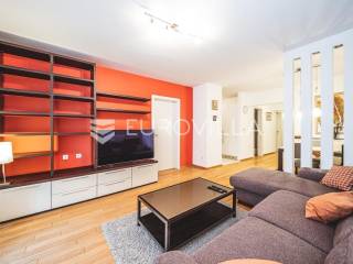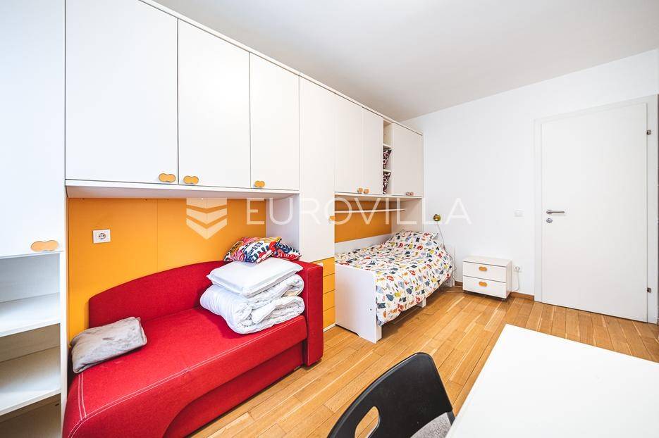 Zagreb, Lanište, odličan četverosoban stan površine 96 m² na 4. katu zgrade novije gradnje s liftom.Sastoji od ulaznog prostora, dnevnog boravka s blagovaonicom, odvojene kuhinje, dvije kupaonice, walk-in garderobe, tri spavaće sobe(od kojih je jedna nenamještena) te dvije loggie.Etažno plinsko grijanje, klimatiziran, u potpunosti je opremljen kućanskim aparatima koji osiguravaju ugodan i funkcionalan svakodnevni život.Uz stan ide i garažno parkirno mjesto na etaži -1 te spremište.Odlična lokacija s izvrsnom infrastrukturom - u samoj zgradi nalazi se trgovina osnovnim živežnim namirnicama, dok su u neposrednoj blizini trgovački centri, osnovna škola i vrtić. Shopping mall Arena Centar udaljen je svega pet minuta hoda, a jednako je blizu i javni gradski prijevoz (autobus i tramvaj), što lokaciju čini iznimno praktičnom za svakodnevni život.Za više informacija slobodno se javite.... Više na eurovilla.hr, ID: 702070