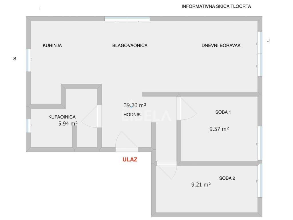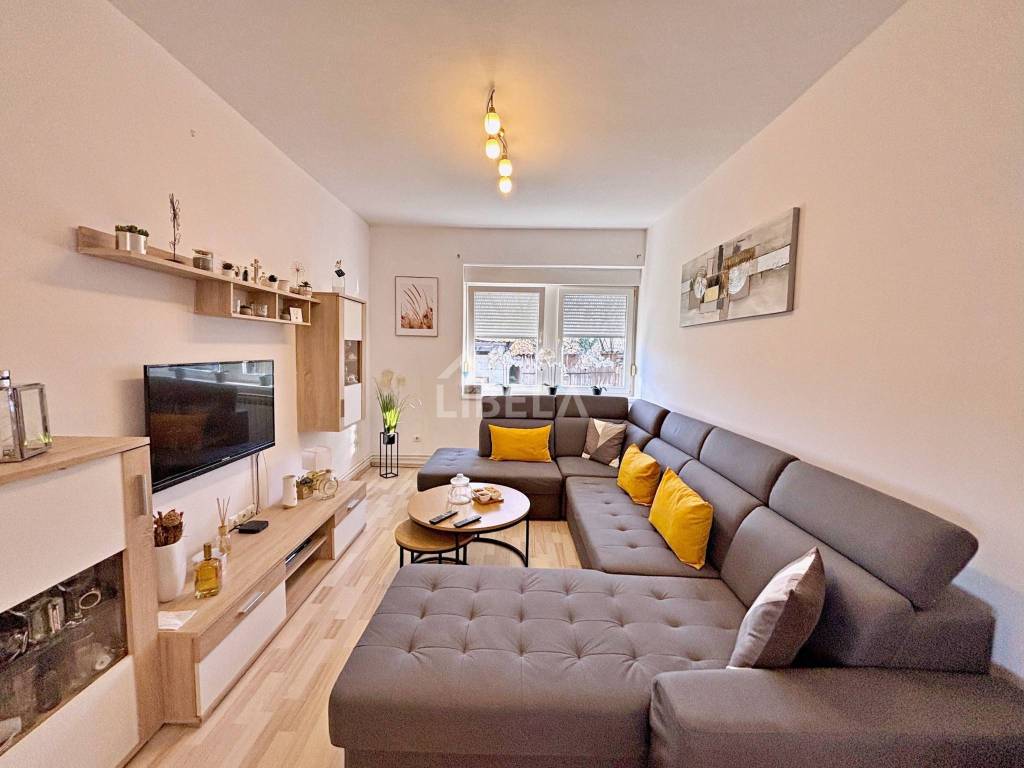 Prodaje se polunamješten trosoban stan ukupne prodajne površine 63,23 m2 u visokom prizemlju dvokatnice bez lifta.