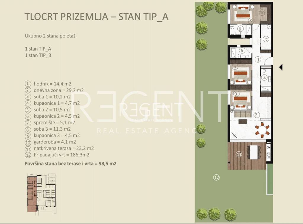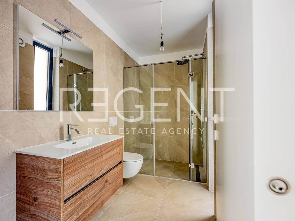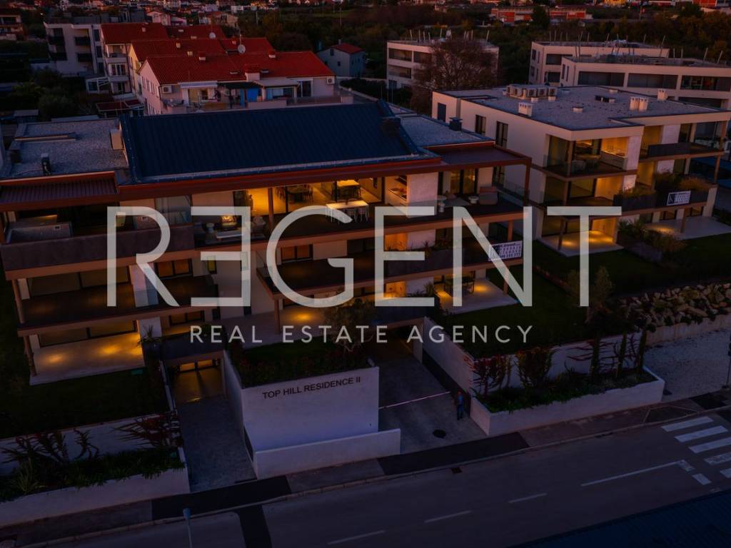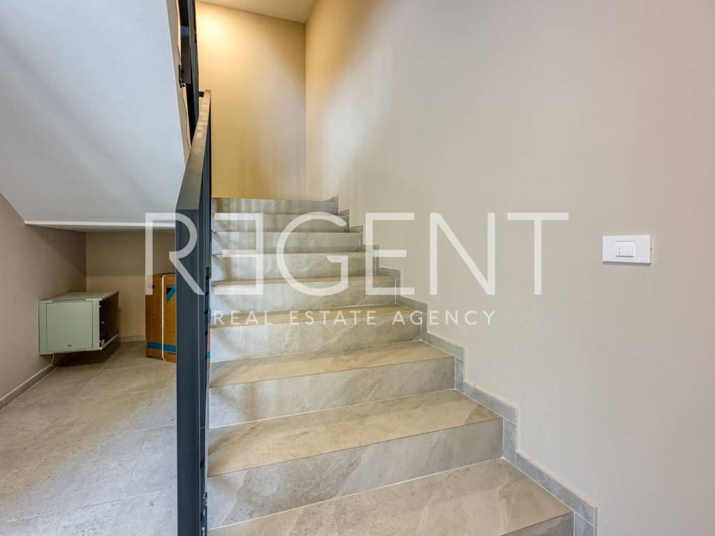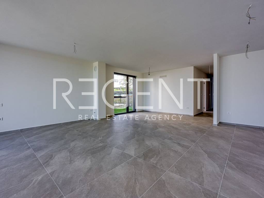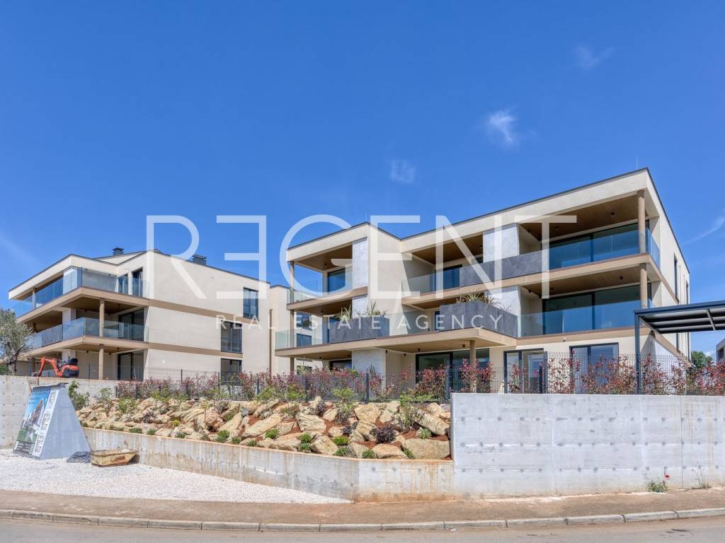 We present to you a project of luxury apartments in the residential part of Novigrad, right next to the sea and other amenities. Novigrad is well connected by transport to all parts of Istria, as well as to neighboring countries, and the highway is only a 5-minute drive away. The building is located at the highest point of Vidal, surrounded by new buildings with a sea view. This luxury residential complex houses a four-room apartment on the ground floor of the building. The apartment has a closed living area of 98.5 m2. With a covered terrace (11.60 m2), garden (18.63 m2), storage room (2.63 m2), two parking spaces (5.00 m2) it totals 136.36 m2 of surface area. The apartment consists of: hallway, living room with kitchen and dining room, three bedrooms with associated bathrooms, wardrobe, storage room, covered terrace and garden. The apartment includes a garage parking space and storage. APARTMENT INTERIOR: Interior : A combination of aesthetics, functionality and comfort. The modern style is aligned with the latest trends in interior design, with an emphasis on decent and unobtrusive details enriched with warm shades of natural colors. Smaller apartments have two bedrooms and one bathroom, while larger apartments have two bedrooms with bathrooms and a separate toilet. In all apartments, regardless of surface area, the living room is an open plan that connects the kitchen, dining room and living room into one unit with access to a spacious terrace. In addition to comfort, great attention is also paid to the safety of the building. All apartments have built-in security and fire doors, while the triple-layered aluminum windows have automatic blinds and blinds on the loggias. The combination of traditional materials and modern design leaves an impression of luxury emphasized by details such as high ceilings, quality ceramics for the bathroom, elegant "filomuro" interior doors and large-format wooden parquet. Such an interior, in natural texture and warm shades, unobtrusively radiates a warm welcome, while clean and straight lines with large, glass surfaces further emphasize the spaciousness. The completion of construction is expected in 2025.
