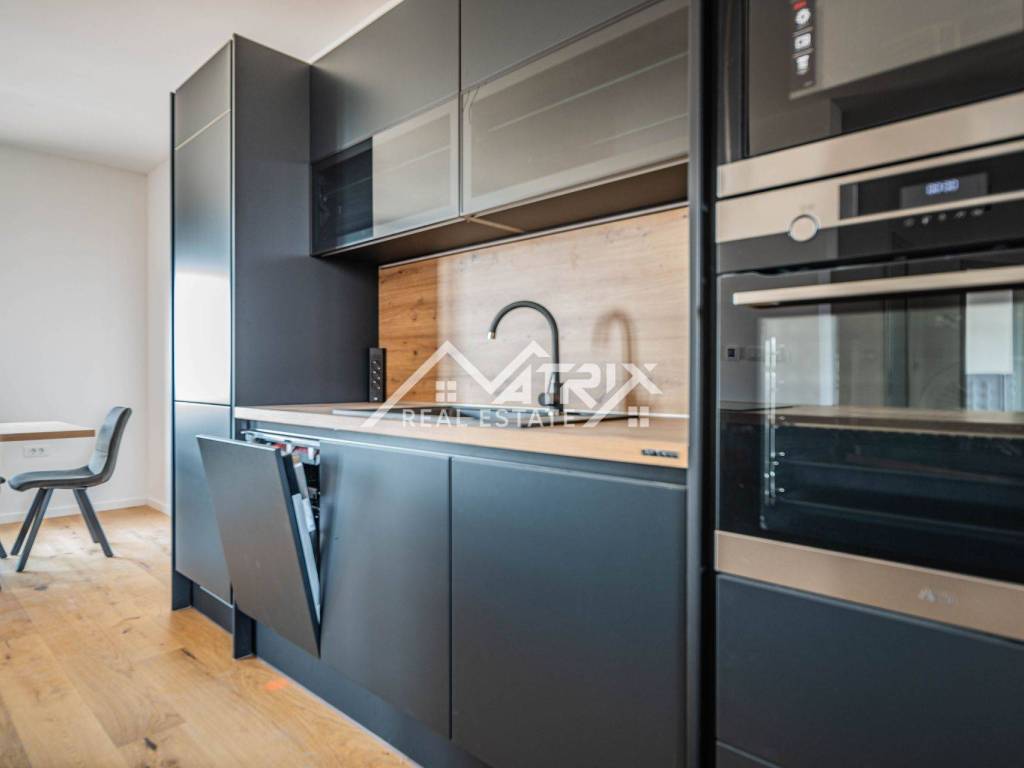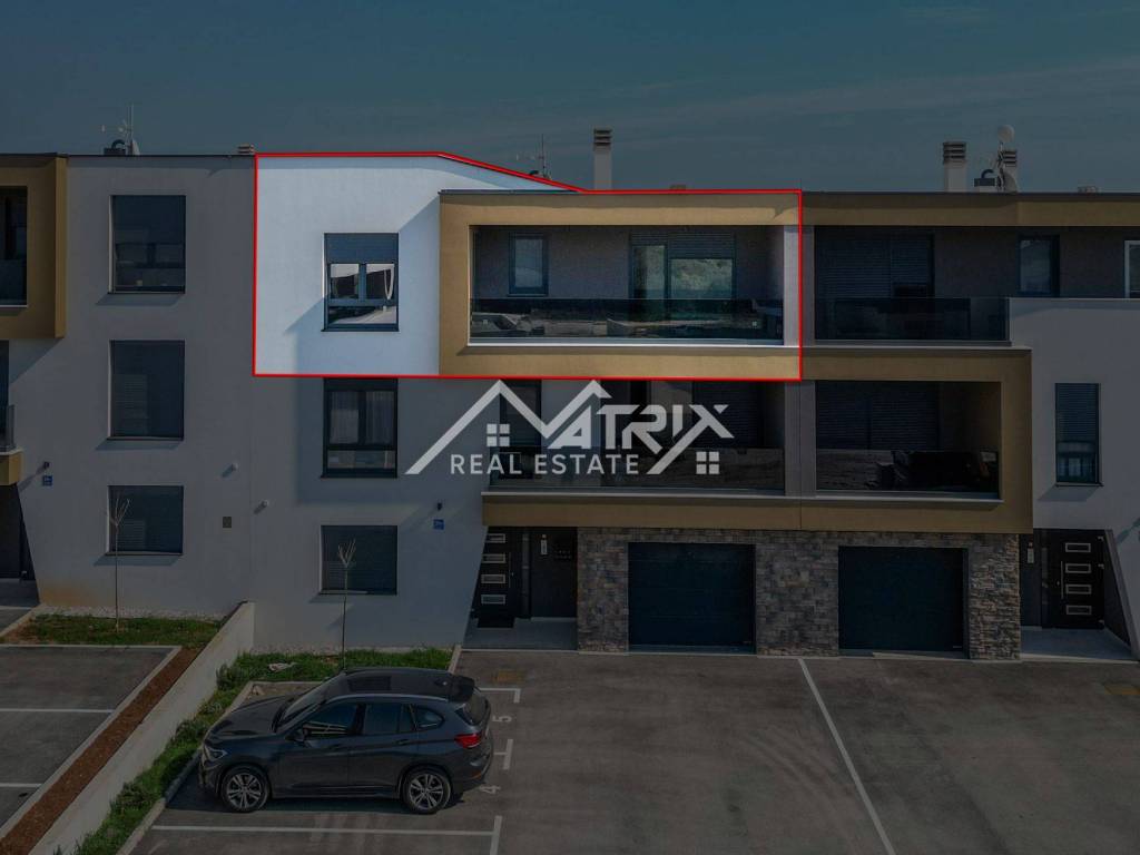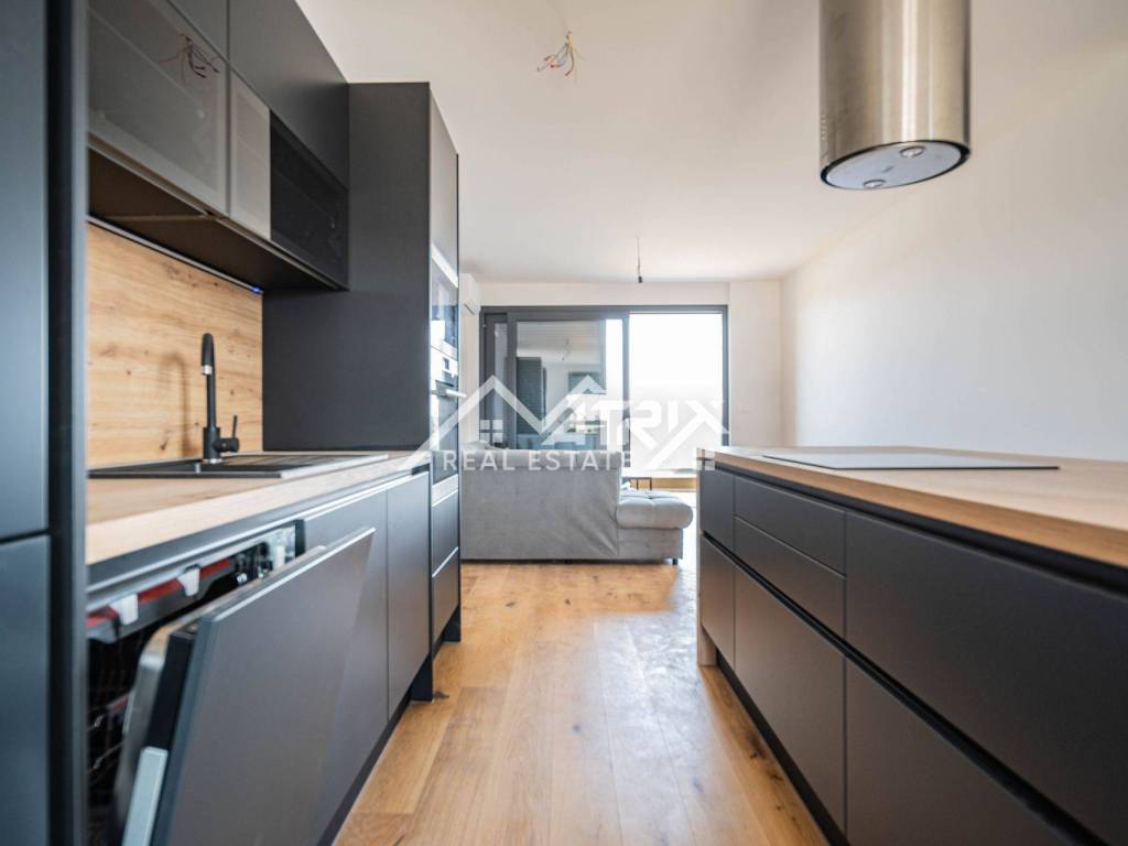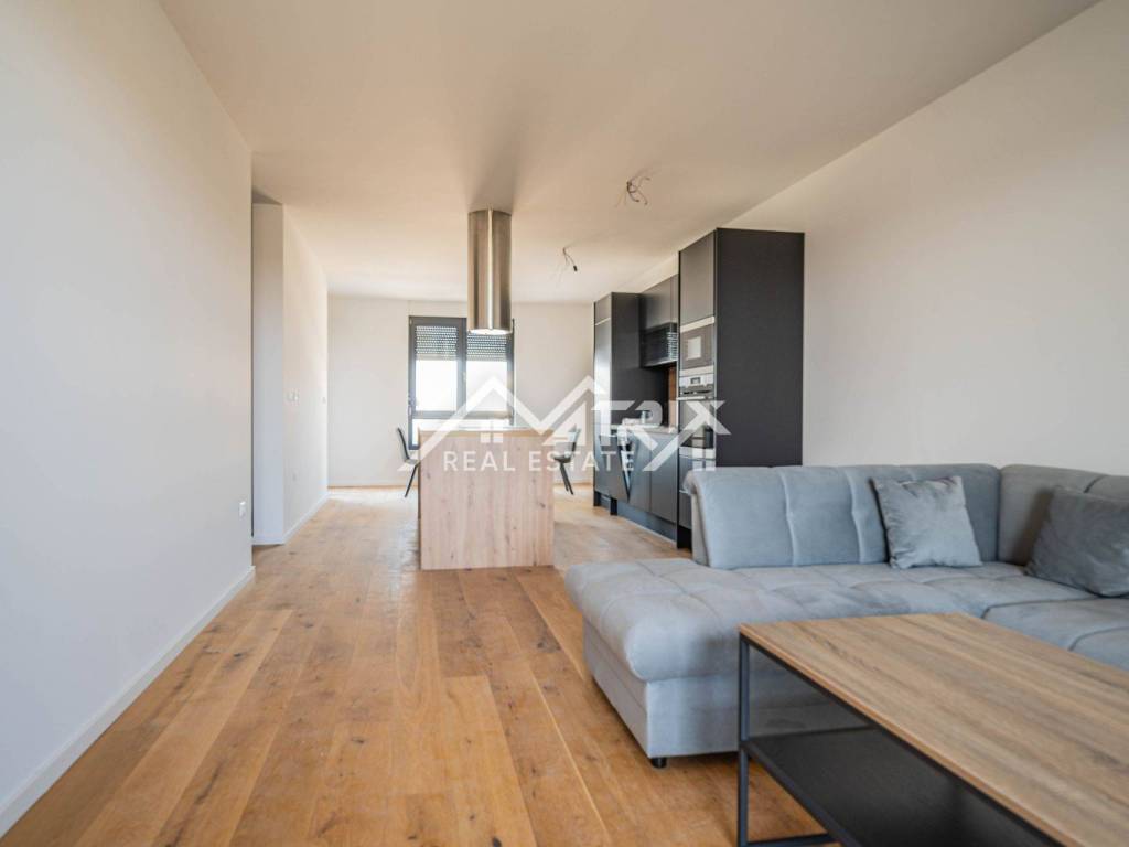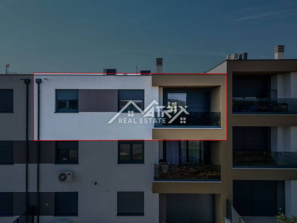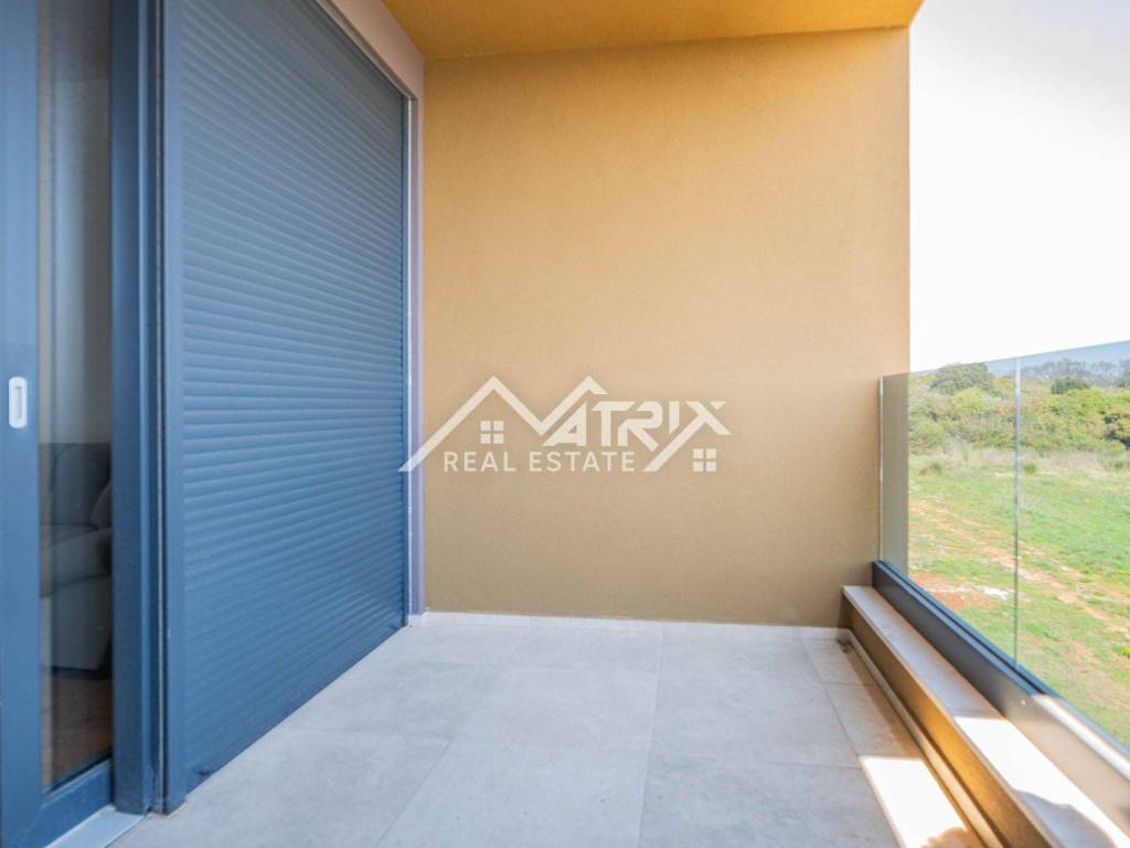 For sale is an apartment on the 2nd floor of a new-build in Pula, in a small building with a total of four apartments. The apartment’s net area is 113.14 m². It is equipped with multi-zone underfloor heating, air-conditioning for heating and cooling, and electric shutters. Oak parquet is installed in the living areas, premium ceramic tiles are fitted, and both bathrooms feature quality sanitary ware.