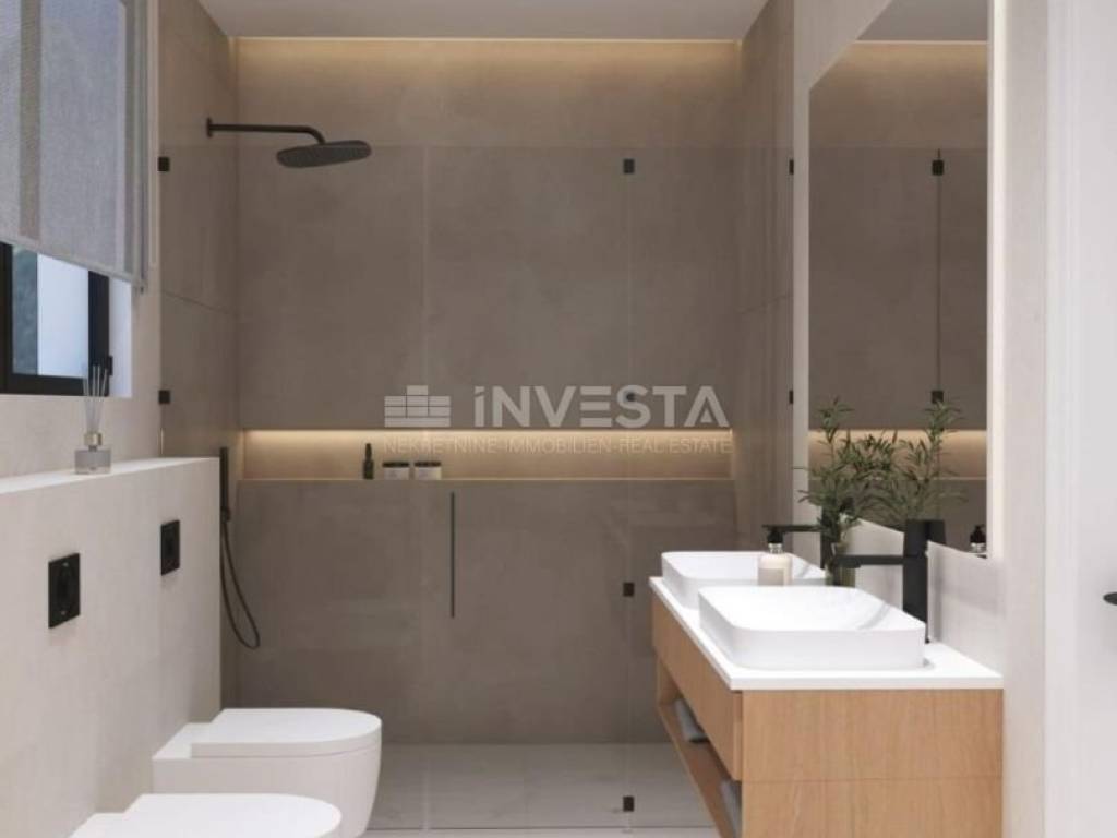 An exclusive penthouse apartment is for sale in a modern building located in a quiet and attractive area near the center of Premantura, the sea, and organized beaches. The building emphasizes contemporary architecture, functional layout, and high-quality construction, providing an ideal combination of comfort, privacy, and luxury.