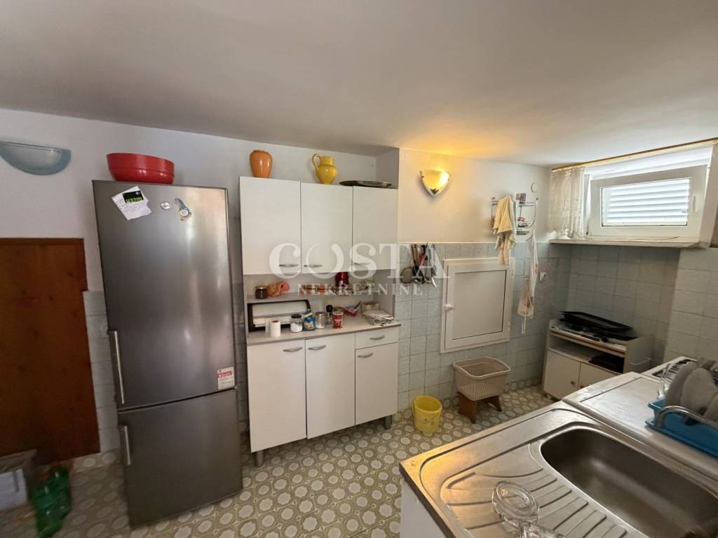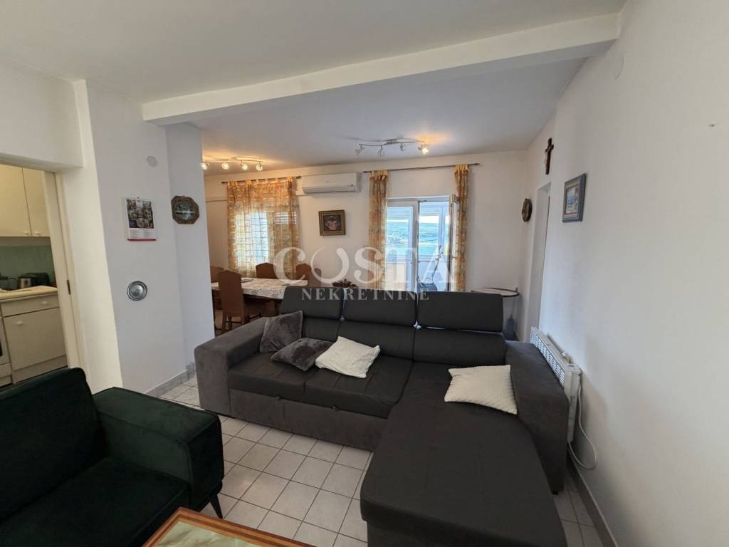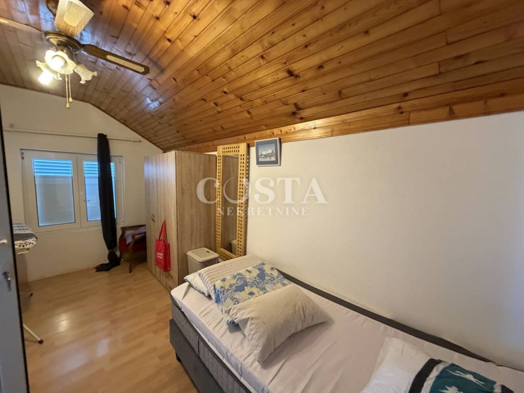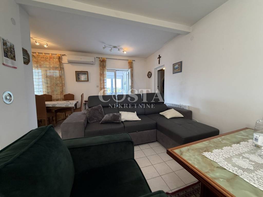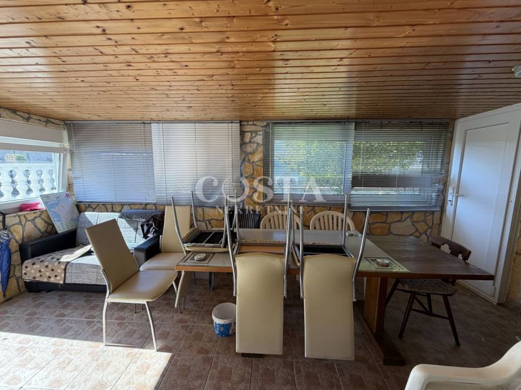 An apartment house for sale in Gornji Karin in Zadar County. The property has an area of ​​170 m2 and is built on a plot of 285 m2. It consists of a ground floor, first floor and attic. The ground floor has a kitchen, bathroom, one bedroom, additional toilet and a closed terrace. The first floor has an entrance hall, a living room with a kitchen and dining room, one bedroom and a bathroom and a closed terrace with an impressive sea view. The first floor also has another bedroom with its own bathroom and a separate exit to a second, rear terrace. The attic consists of a room with a kitchen, bathroom and a spacious terrace. In the yard there is a 27 m2 garage, a storage room, outdoor parking and a garden.
