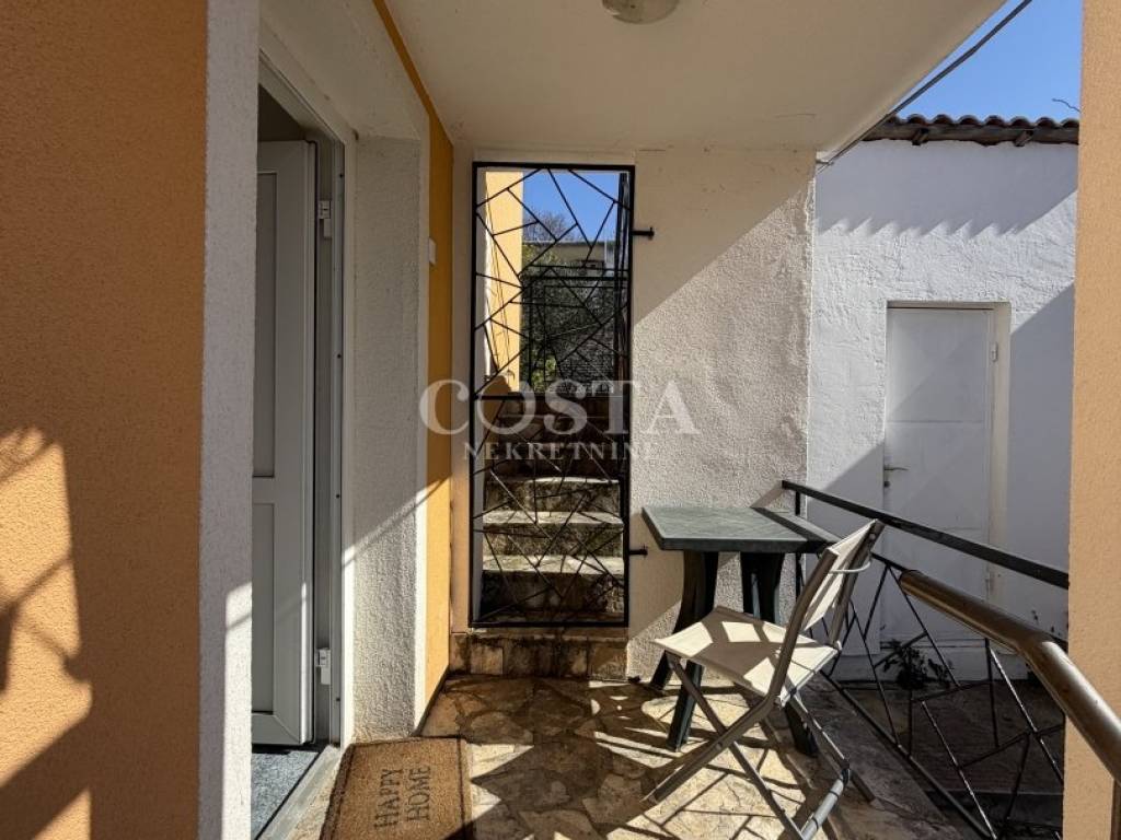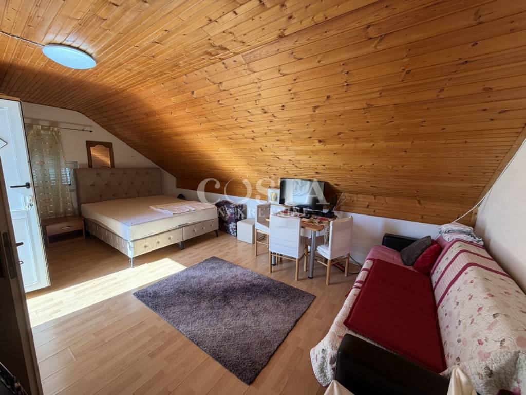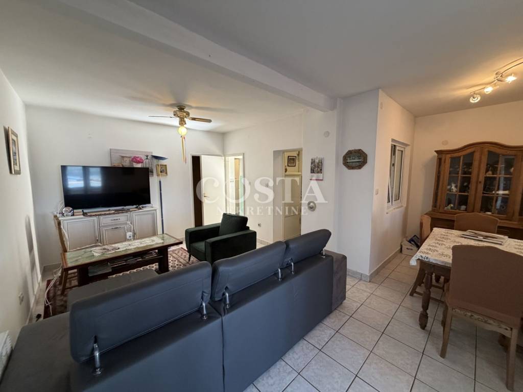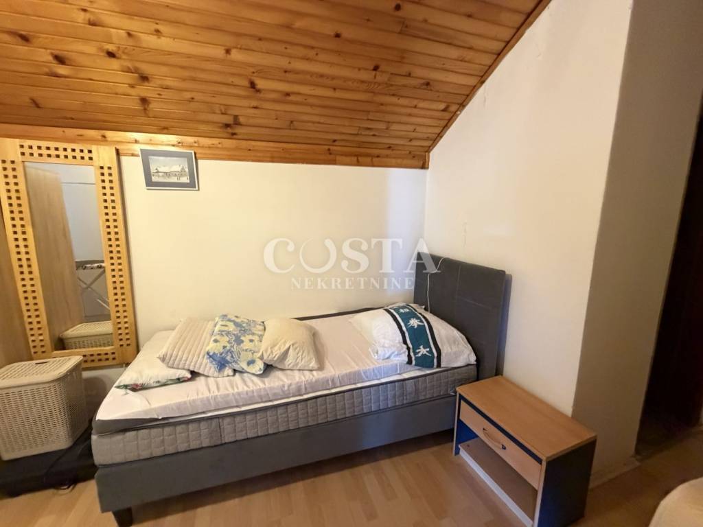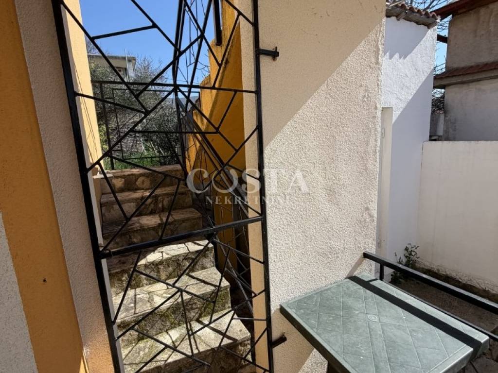 An apartment house for sale in Gornji Karin in Zadar County. The property has an area of ​​170 m2 and is built on a plot of 285 m2. It consists of a ground floor, first floor and attic. The ground floor has a kitchen, bathroom, one bedroom, additional toilet and a closed terrace. The first floor has an entrance hall, a living room with a kitchen and dining room, one bedroom and a bathroom and a closed terrace with an impressive sea view. The first floor also has another bedroom with its own bathroom and a separate exit to a second, rear terrace. The attic consists of a room with a kitchen, bathroom and a spacious terrace. In the yard there is a 27 m2 garage, a storage room, outdoor parking and a garden.