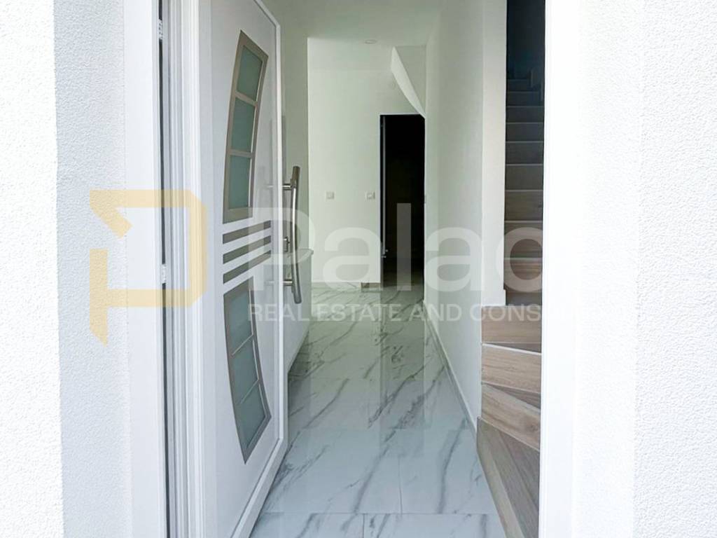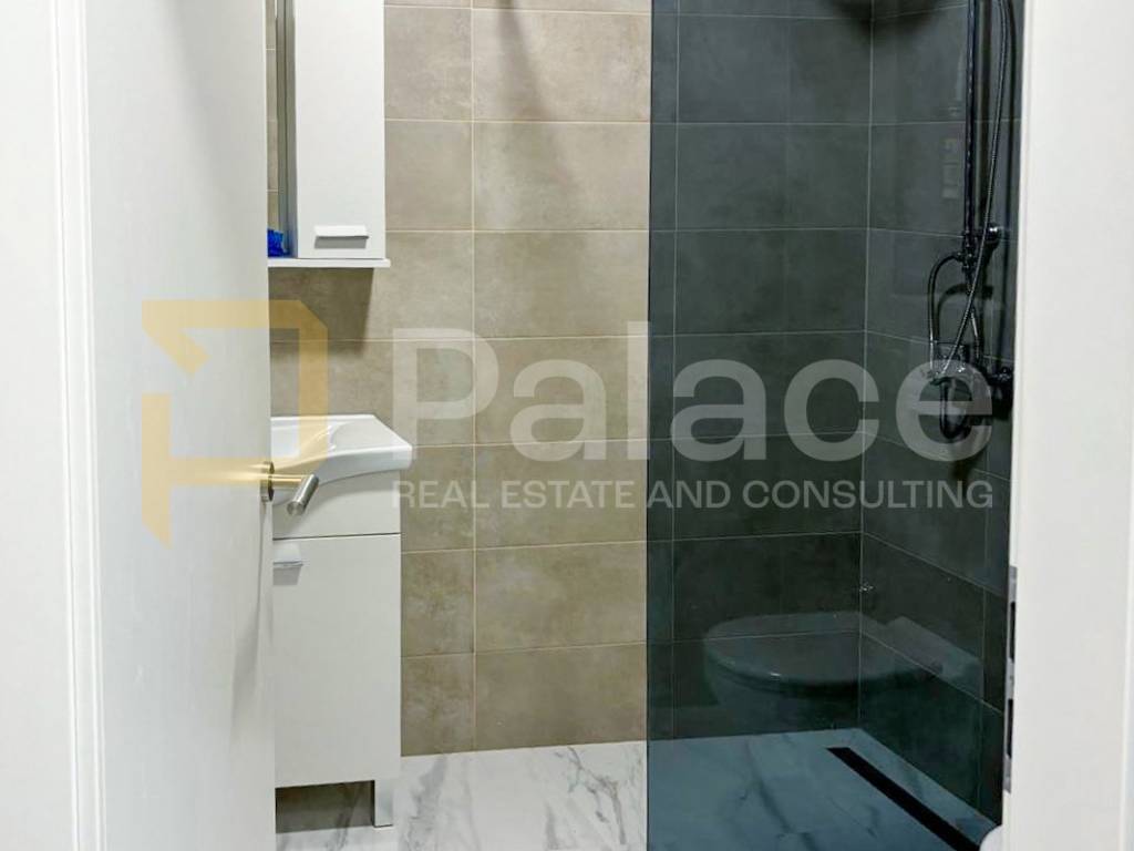 The special value of this apartment is its separate entrance and private garden, which allow for everyday living with a touch of the comfort of a family house. The lower floor is designed as an open space of the living room, kitchen, and dining room, where an abundance of natural light and a cozy atmosphere dominate. The living area leads out to the garden, perfect for relaxation or socializing. This floor also includes a bathroom and storage room, with elegant marble ceramic tiles covering the floors.