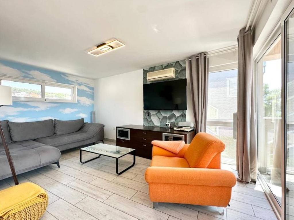 For sale is a modern apartment house in an exceptional location, just a few steps from the sea, located on the western side of the island of Čiovo. The house is southwest oriented, which allows for plenty of natural light throughout the day and a beautiful view of the sea and sunsets. It is surrounded by a carefully landscaped garden that provides privacy and a pleasant atmosphere for relaxation.