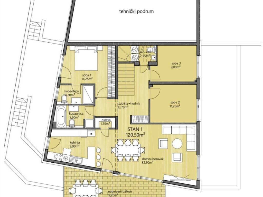 An apartment for rent in a beautiful location near Maksimir Forest. The apartment consists of a living room with access to the terrace, a fully equipped kitchen, three bedrooms, two bathrooms, a toilet with washing machines. The apartment also includes two parking spaces (one covered and one open) and a technical basement.