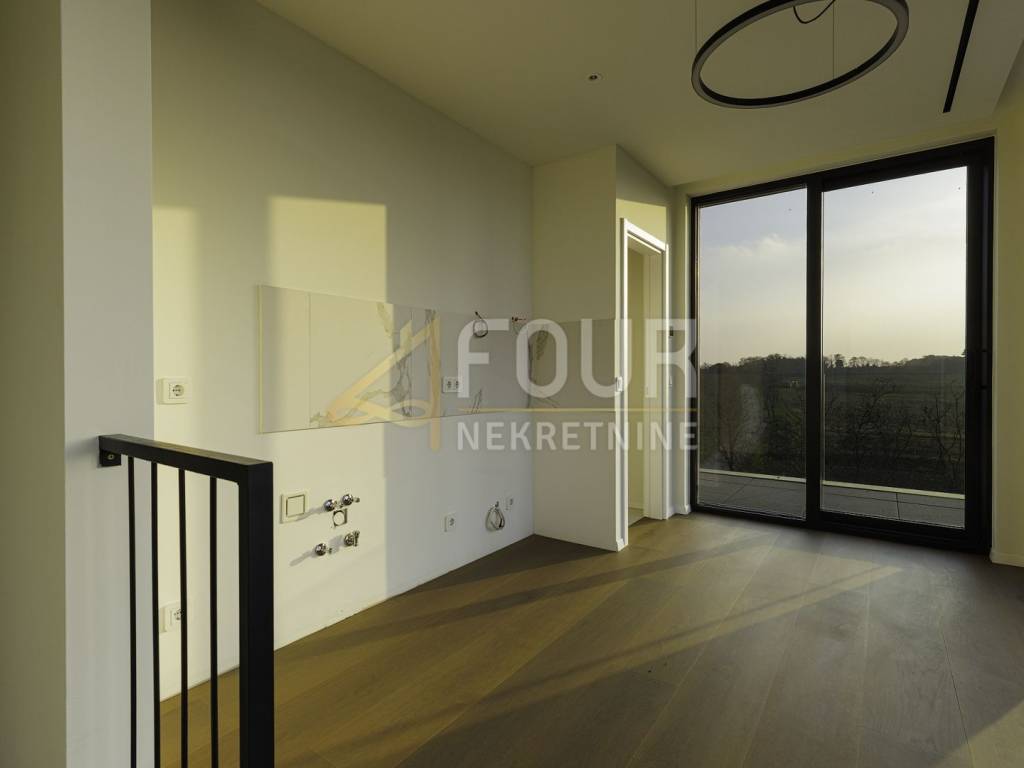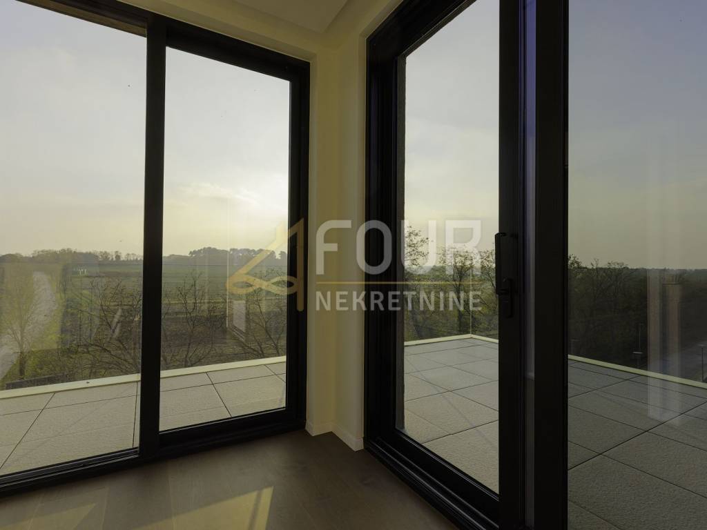 Two-story apartment with a surface area of 123.35m2, with a functional layout - 3 bedrooms + living room, with an associated rooftop terrace of 51.40m2 and two parking spaces.