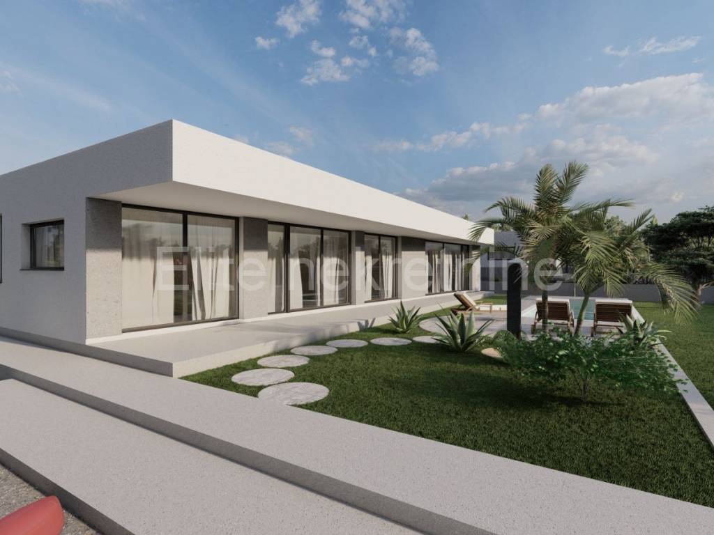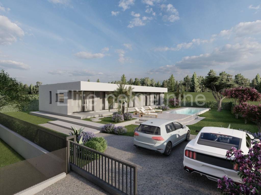 Nedeščina - modern one-story house of 172.45 m2 with a swimming pool The small town of Nedešćina is located in the vicinity of Labin. The tame Istrian place is surrounded by greeneryand is the perfect place for a vacation or a quiet life all year round.It is 5 km from the charming center of Labin, with all tourist, administrative and commercial facilities.and the beautiful beaches of Rabac are 8 km away.This villa with a swimming pool is located on the edge of Nedeščina. It is the last one in the construction area and in front of it is an acacia forest.Modern and simple design with a yard of 624m2, with a swimming pooland with a view of the forest in front of it, this villa offers complete peace and comfort. It has two residential units.The main part consists of a large, living area, a master bedroomwith a bathroom and two more bedrooms that share a bathroom. It also has a smaller storage room.The villa also has a guest suite with two bedrooms, a larger living room, and a bathroom.In front is a paved area for enjoying sunbathing, socializing or swimming in the pool.The living rooms and the master bedroom are connected to the outside area and the pool by sliding walls.It will have underfloor heating with a heat pump and will also be additionally air-conditioned.There are two parking spaces in the yard.Construction is underway and completion is expected in March 2024.The villa will be completely finished with landscaped surroundings.In agreement with the buyer, furniture can also be included.The villa also includes the use of a small park for childrenIf you are looking for a villa in Istria for an ideal holiday or a peaceful, high-quality family life, this is an excellent choice.