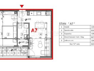 A modern one-bedroom apartment marked A1 is for sale, located on the ground floor of a quality new building in the attractive Veruda settlement, only 800 m from the sea and well-maintained beaches.