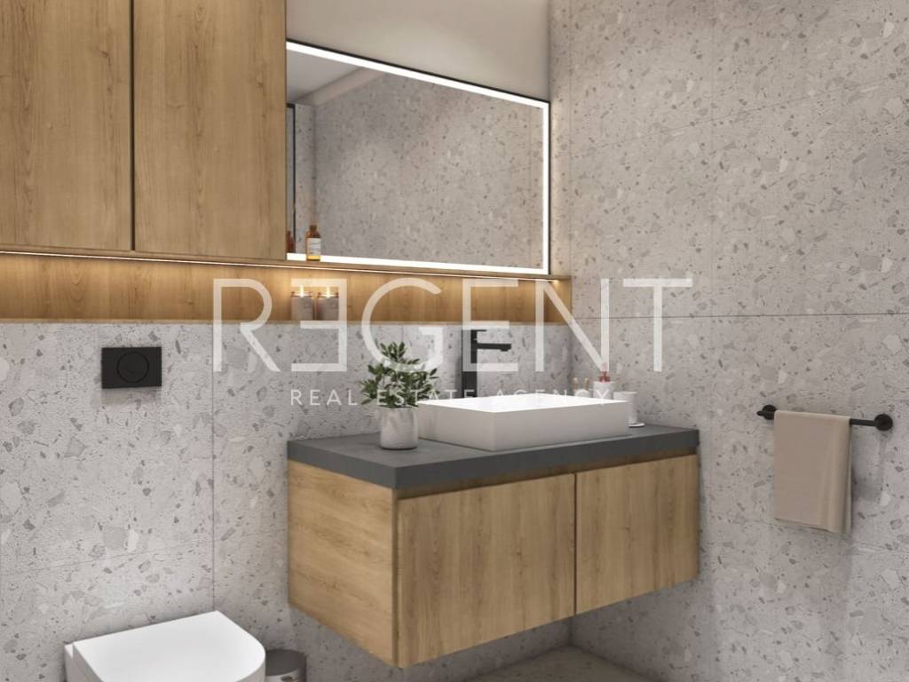 One-bedroom apartment on the ground floor, located in the peaceful settlement of Volme near Pula. The apartment is located in a modern new building with high energy efficiency and is suitable for year-round living, vacation or tourist rental. The total net area is 44.16 m², and consists of a hallway with a wardrobe, a bathroom, a bedroom and a living room with a kitchen and dining area. The apartment also has a garden of 4.59 m² and a parking space PM8 of 3.12 m², which makes a total of 51.87 m². It is equipped with underfloor heating in all rooms, Mitsubishi air conditioning, PVC joinery with triple-layer glass and aluminum blinds on an electric motor. High-quality Marca Corona ceramic floor covering is installed, and the facade is made with additional insulation and natural Travertino Classico stone. The location is quiet and surrounded by greenery, close to schools, kindergartens, shops and all amenities. Cape Kamenjak and the sea are in the immediate vicinity, and Pula Airport is only a 15-minute drive away. Purchase is possible directly from the investor, without commission and without real estate sales tax. For additional information or viewing, feel free to contact us.
