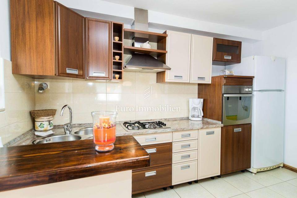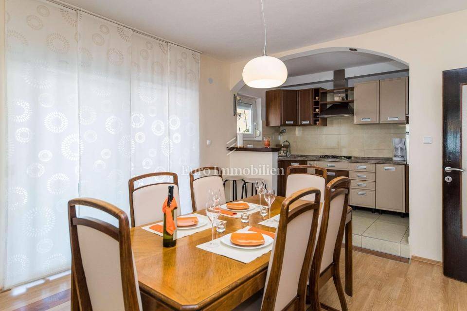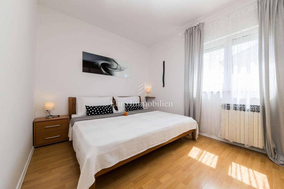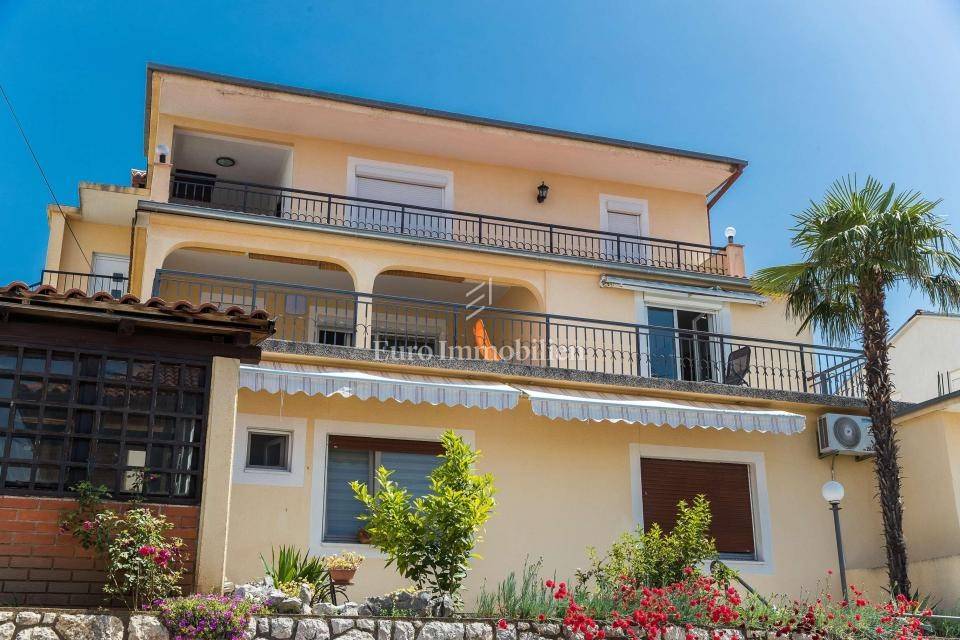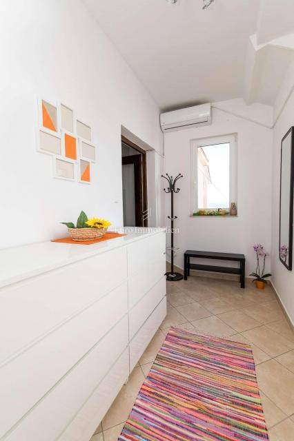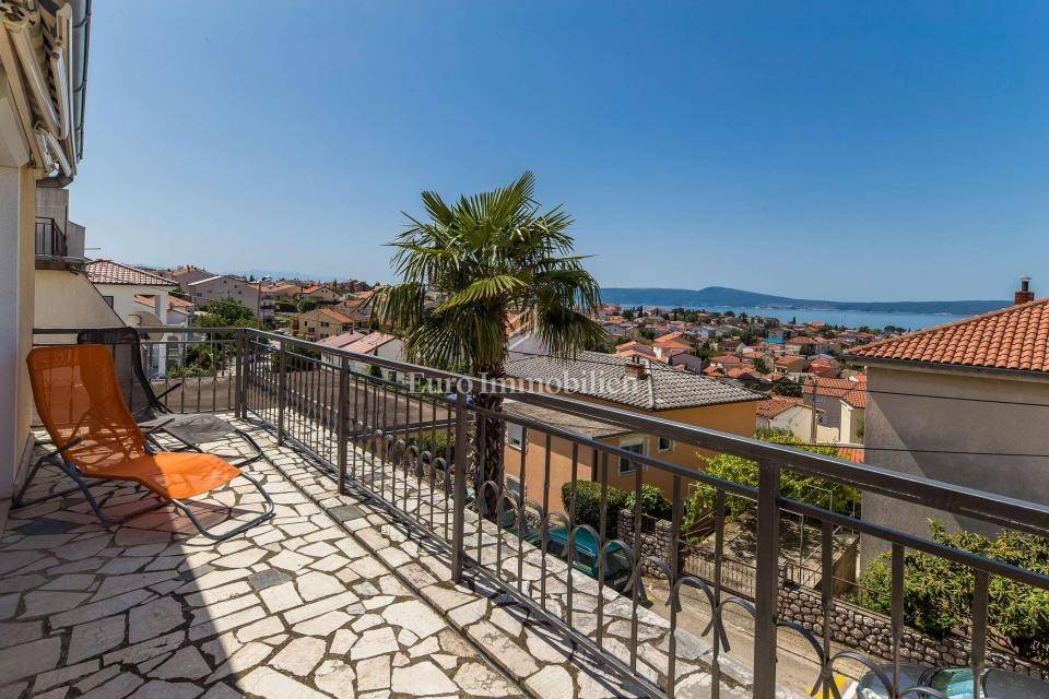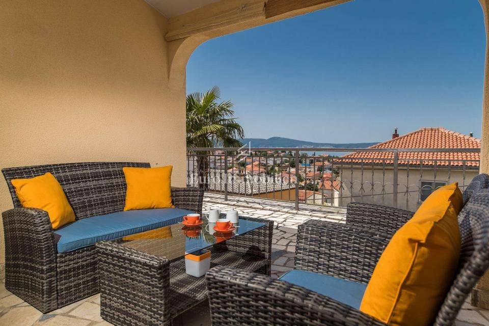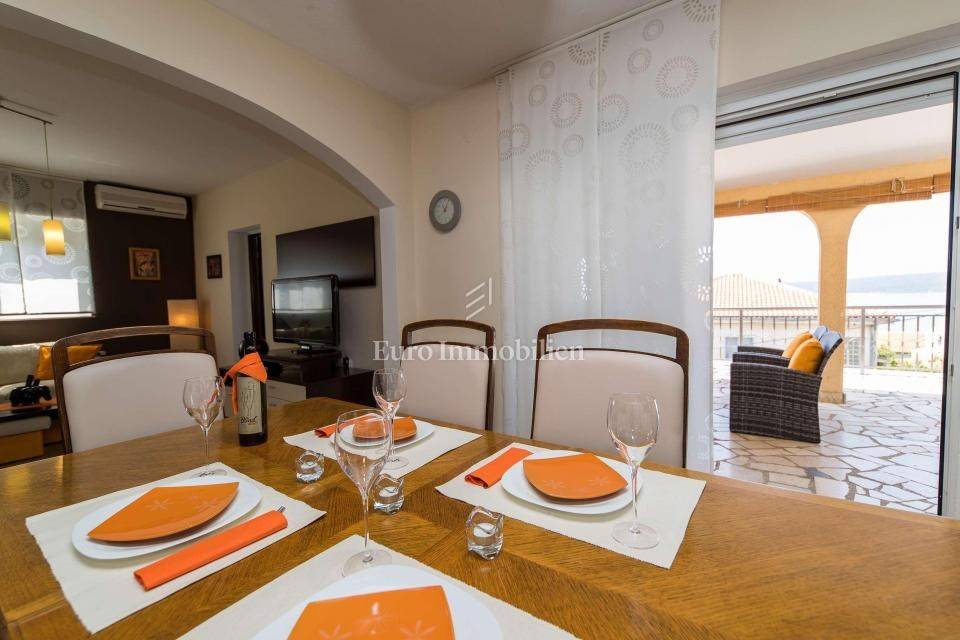 Real estate Selce - an apartment for sale with an excellent layout with three bedrooms, two bathrooms, a large living room and kitchen, a storage room and an extremely large terrace with a beautiful view of Selce and the sea. Parking in ownership, apartment ready to move into, extremely neat and well maintained. Good location 300 meters from the sea!