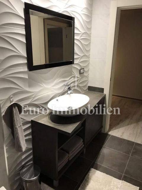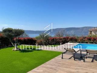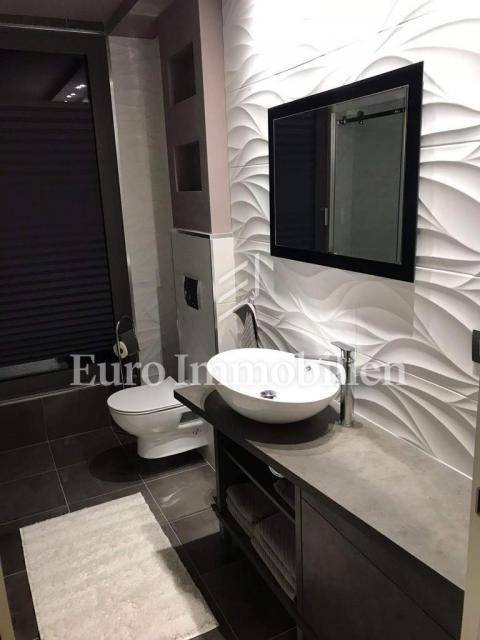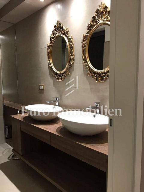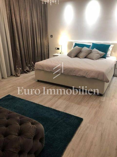On the first floor, which is connected with the ground floor by a modern staircase, are three bedrooms and two bathrooms. Two rooms have access to a covered terrace of 12 m2 with an open sea view, while the third room has access to a loggia, which also offers an open sea view.