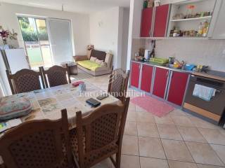 An apartment of 72.96 m2 on the first floor of an apartment building is for sale. The apartment consists of two bedrooms, living room with kitchen and dining room, bathroom, toilet, hallway and terrace. The apartment has a beautiful view of the sea. Furnished, air-conditioned. It has one parking space.