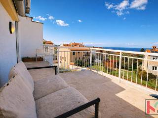 The apartment features a classic layout that includes a hallway, a living room with a kitchen and dining area, a bedroom, and a bathroom. A special value of this property is the spacious terrace with a beautiful view of the sea and the Istrian landscape, a true little oasis for relaxation and enjoyment.