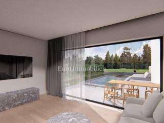 Very high-quality and modern construction, thermal insulation (10 cm), PVC windows and glass walls (3.30 m wide), eclectic blinds, air conditioners in the rooms and dining room / living room, underfloor heating in the bathrooms, high-quality ceramics and sanitary ware in the bathrooms.