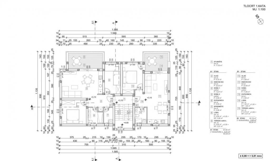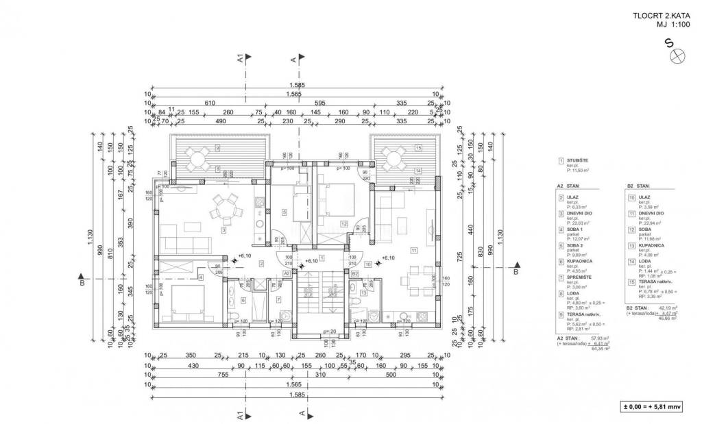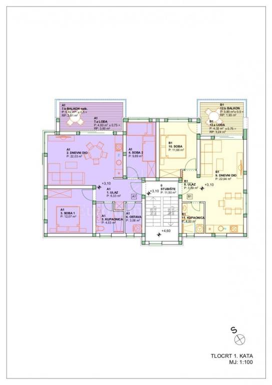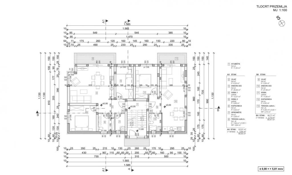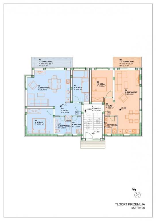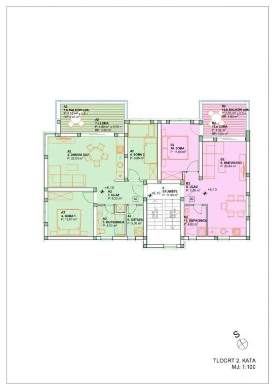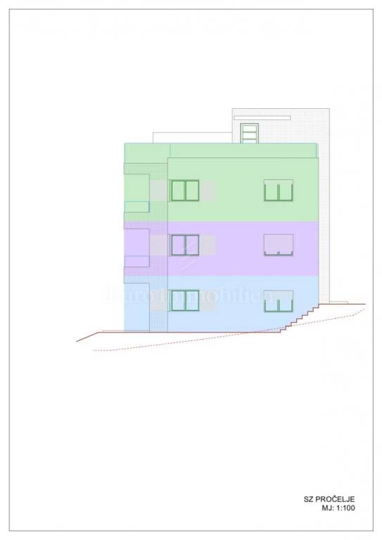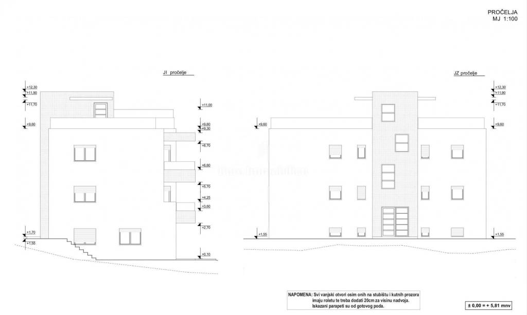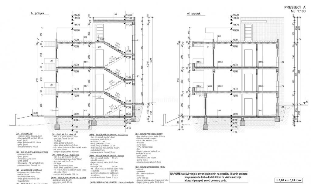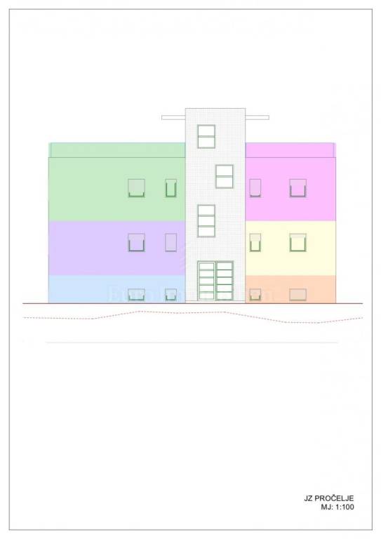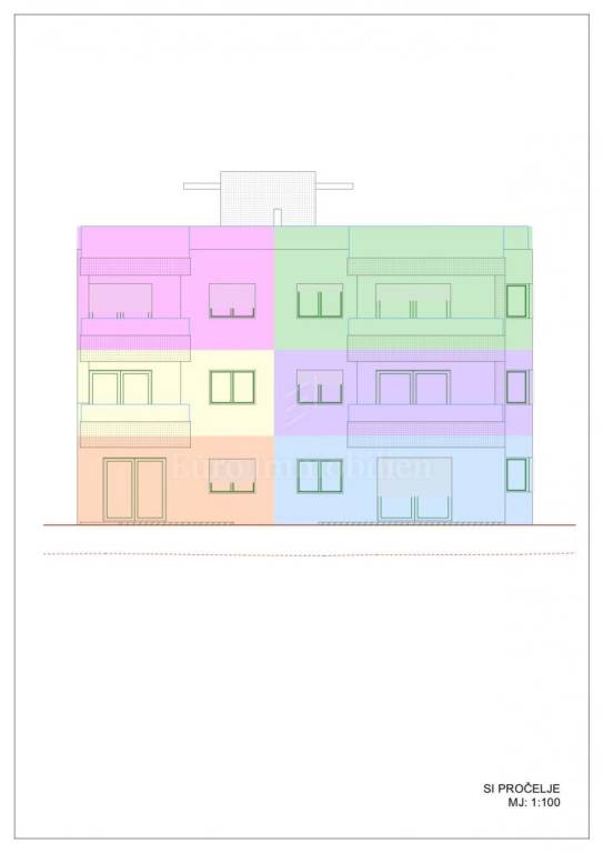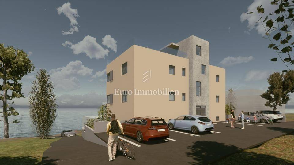 The property consists of six residential units on the ground floor, 1st and 2nd floor. On each floor there are one two-bedroom and one one-bedroom apartment. On the northeast side of the building there is the sea and a wonderful view towards Velebit and Paklenica, all apartments are organized so that the living areas are oriented towards this view. The roof is designed as a walkable roof terrace that can be reached from the staircase. Each apartment has one parking space.