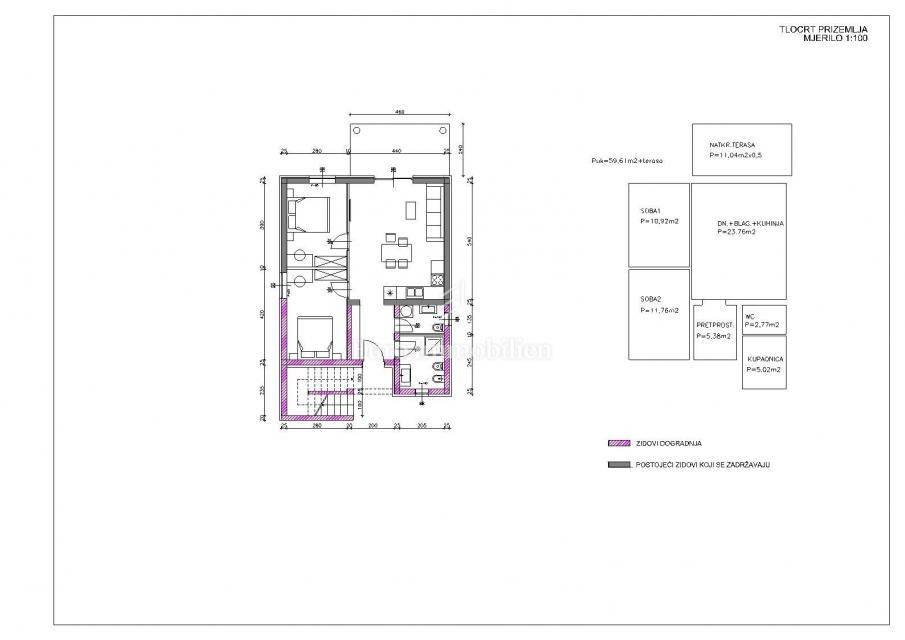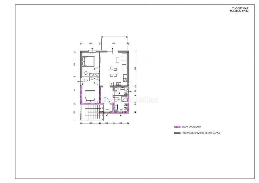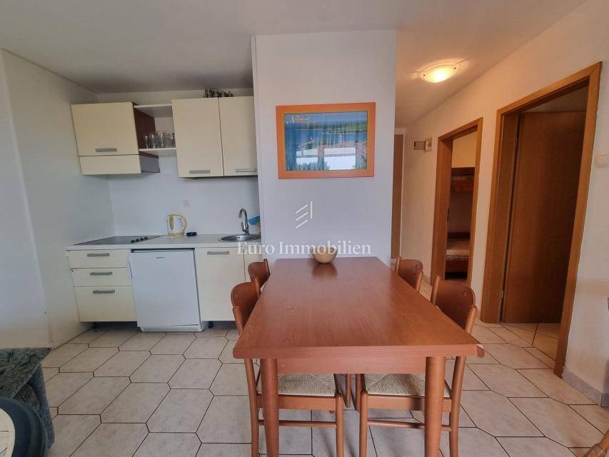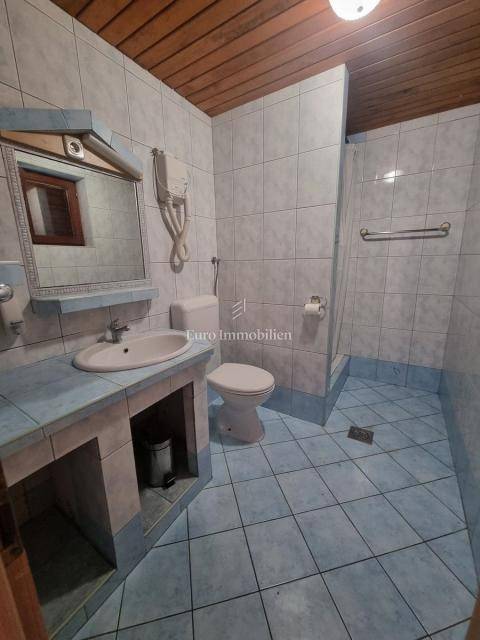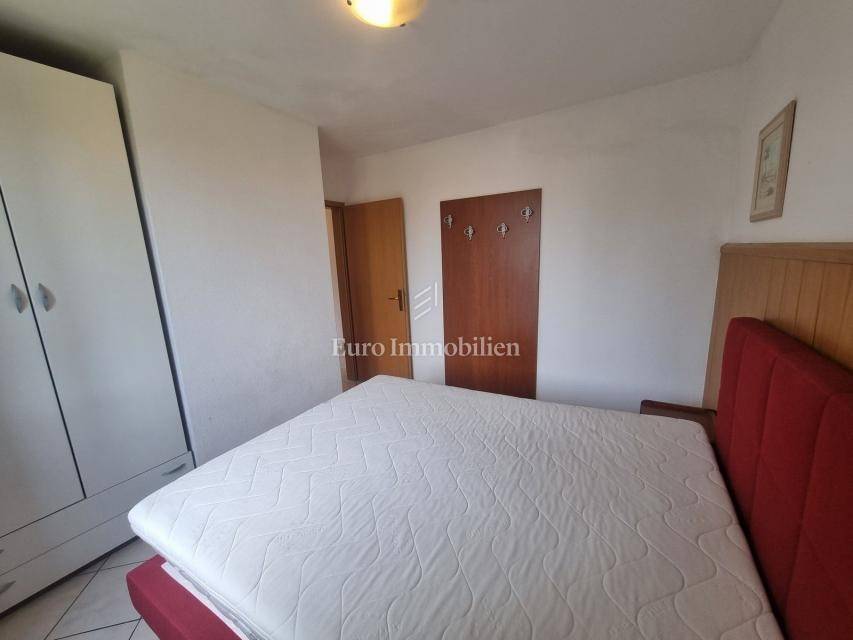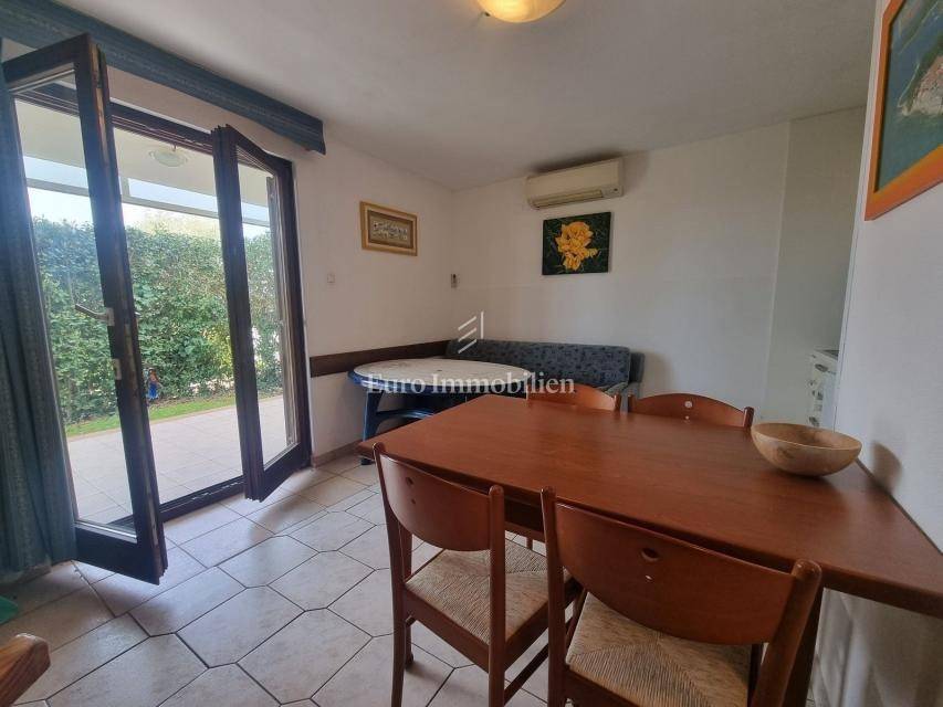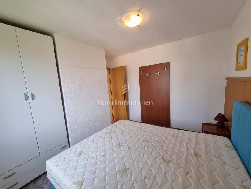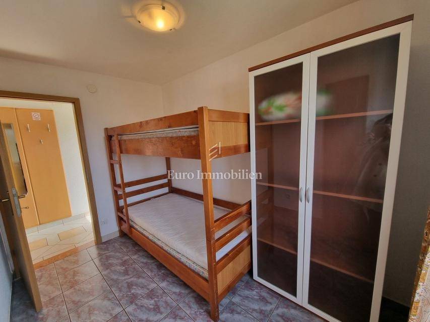The house extends over the ground floor and first floor. On the ground floor there is an apartment of 59.61 m2 with a terrace, consisting of a hallway, two bedrooms, a bathroom, a living room with a dining room and a kitchen. From the living room there is access to a spacious covered terrace and garden. The external stairs lead to the apartment on the first floor of the same square footage and layout. From the first floor there is a beautiful view of the sea from the bedrooms, the living room and the balcony. The apartments need minor renovation, but they are functional and are rented for tourist purposes. Heating/cooling is via air conditioning. The house has 369 m2 of garden with a barbecue and parking.