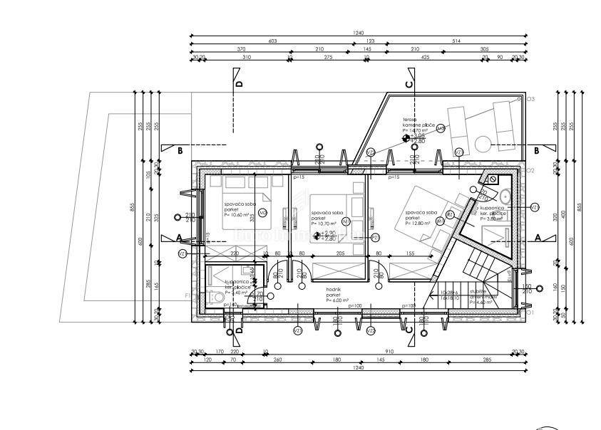 1st floor: 3 bedrooms, 2 bathrooms, terrace.