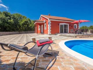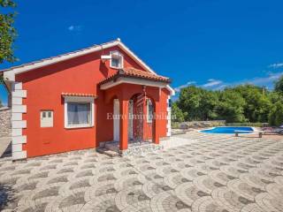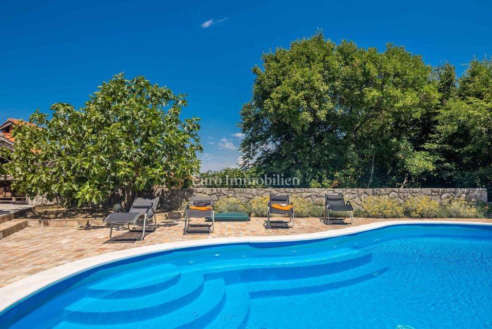 In the center of the island, in a small town in the municipality of Dobrinj, a detached house with a beautifully landscaped garden and a heated pool is for sale.