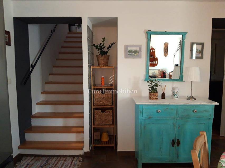 The house with an area of 100 m2 extends through the ground floor and first floor. On the ground floor there is a living room with a dining room and a kitchen and a large covered terrace connected to a landscaped garden. Internal stairs lead to the first floor where there are two bedrooms and a bathroom. During the renovation of the property, the original character and uniqueness of the stone house was preserved. There is a swimming pool of 35 m2 with a sunbathing area and an outdoor storage room in the landscaped garden. There is parking for several vehicles at the entrance of the yard. It is located in a quiet location, a few minutes' drive to the sea and all facilities.
