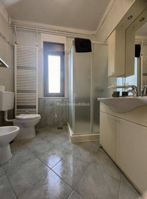 Parking spaces for several vehicles are provided in front of and next to the garages. The house is in an excellent and practical location, close to all necessary amenities and just a few minutes’ walk from the sea and the beach.