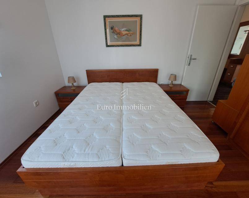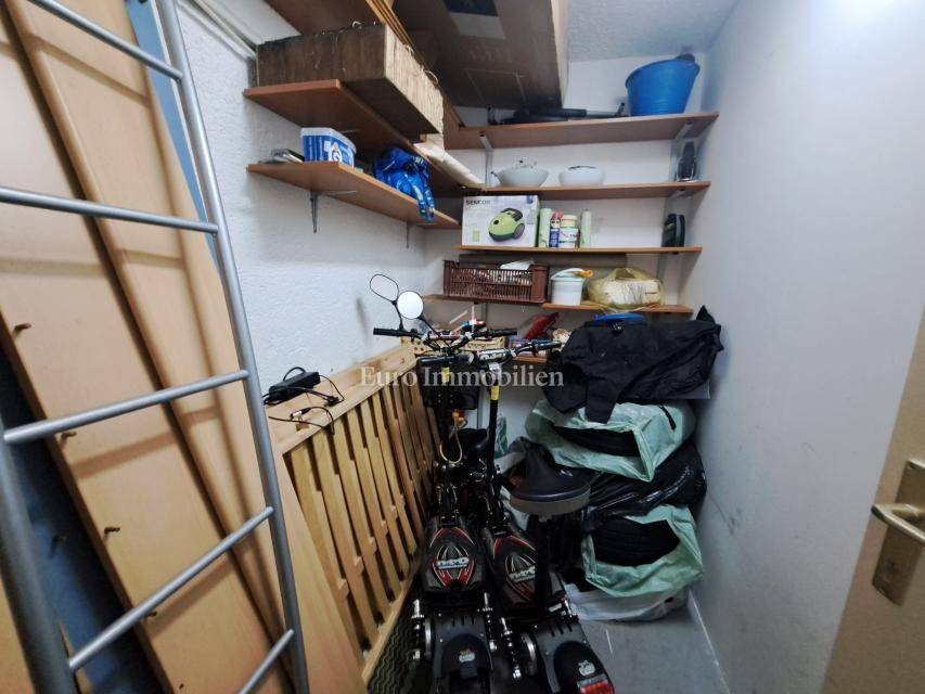The apartment includes one parking space in the garage, where a storage room is also located.