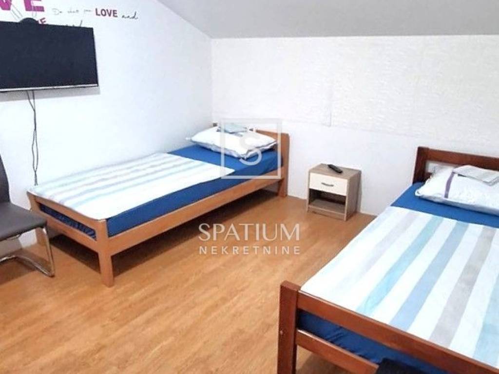 KASTAV, we have received an apartment for long-term rent to workers, with a living area of 50 m2. It consists of a living room, kitchen, two bedrooms with a total of four beds, a bathroom and a balcony. It is located on the first floor of the house and several parking spaces are provided. The price per worker is €300. The price includes utilities and cleaning.