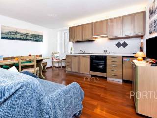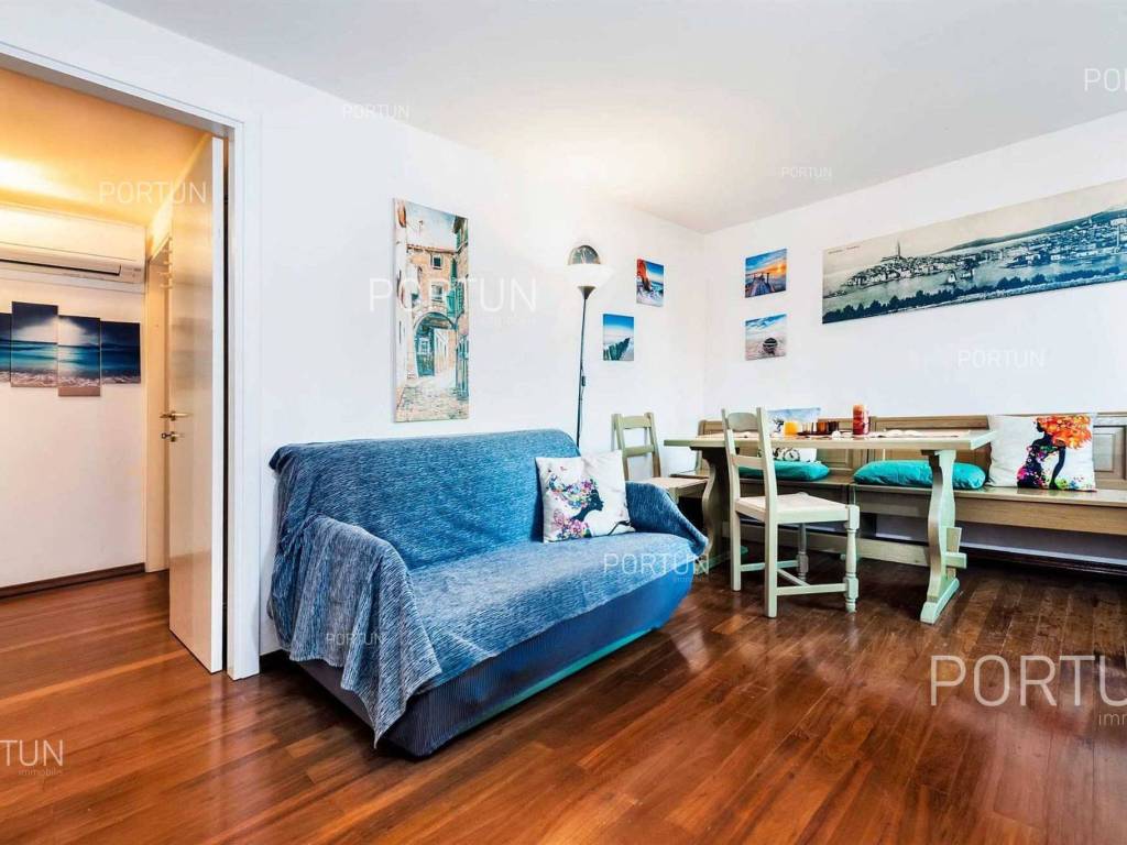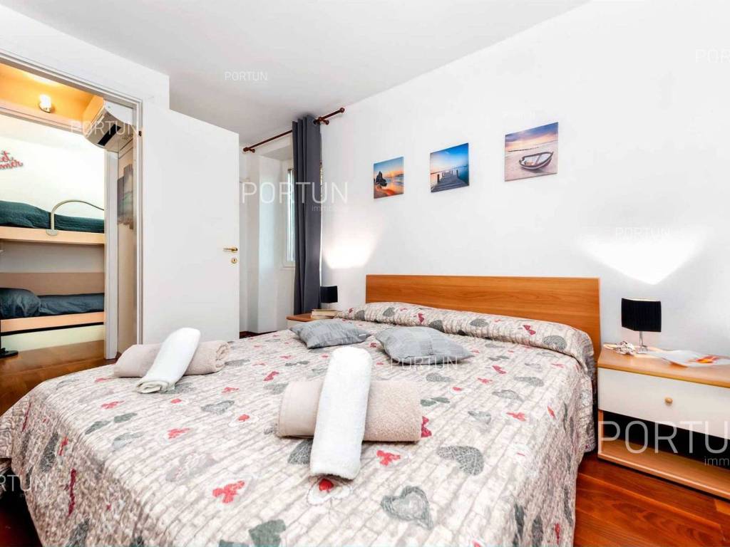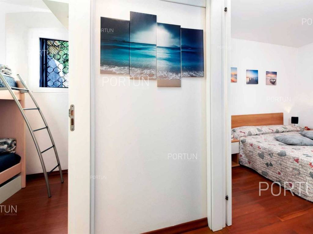 In a quiet street leading to the center of Rovinj, a fully renovated apartment of 34.59 m2 in an old stone house is for sale. Though compact, it offers two bedrooms, a comfortable living room with sea view and access to a large shared storage room on the ground floor, available only to residents.The apartment is located on the first floor of a traditional stone house extending through the ground floor and three upper levels. Internal stairs lead to the entrance, and the layout is carefully designed to make the most of the 34.59 m2 space. It includes a living room with kitchen, two bedrooms, a bathroom, and a hallway.The apartment is southwest-oriented, ensuring plenty of natural light and a pleasant atmosphere throughout the day. Renovation in 2010 brought new comfort wooden joinery with double glazing, air conditioning and an electric water heater make it move-in ready without additional investment.The building has only three apartments, and the ground floor features a spacious shared bike storage for residents only. Nearby are shops, restaurants and promenades, while the sea is just 750 m away. The location combines proximity to the center with the peaceful charm of Rovinjs old streets.If youre looking for a charming apartment in an authentic stone house in Rovinj, this is the perfect opportunity. Contact us for more information or to arrange a viewing well be glad to help you find your new home by the sea.Distances from the propertySea | Beach 750 m Services | Food store 140 m - Cafe or bar 180 m - Inn or restaurant 70 m - Elementary School 500 m - Kindergarten 550 m - Health center 300 m - Pharmacy 300 m - Marina 130 m Sports and fun | Soccer field 1000 m - Handball court 650 m - Basketball court 500 m - Forrestal park Punta Corrente 1,8 km Nearby towns | Bale 14 km - Kanfanar 18 km Traffic | Highway entry Kanfanar 16 km - Pula Airport 39,5 km Attractions | Special ornithological reserve Palud 9,2 km Parking spaces and particles Particles for exclusive use | Storage space Parking by the coast 40 mAbout the houseThe apartment is located in a stone house that extends through ground floor and three above-ground floors. The entrance to the house is on the ground floor level, from the southwest side, and vertical communication takes place via an internal staircase. The basic architectural characteristics of this authentic, old stone house are: 3 Flats External walls | Stone wall Wooden floor structure Roof | Pitched roof covered with clay tiles Built approx. in 1800 Renovated 2010 (Apartment)FurnitureFurniture | All furniture is included in the priceJoinery | Wooden joinery with double glazing - PVC joinery with double glazing - Wooden shutters - Wooden entry door - Classic interior doorsHeating and cooling | Air conditioning - Electric boilerFlooring | Ceramic tiles - Laminate flooringServices Connection to the power grid with its own meter Private connection to the water supply network Connection to the sewage system Paved public access roadDocumentationExtracted documents | Floor study - Usage permissionArea calculationArea of the apartment includes (34,59 m2): Living area = 34,59 m2Data source = Plan of special parts of the building (floor study)