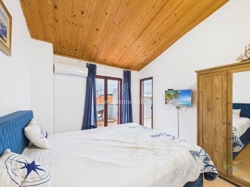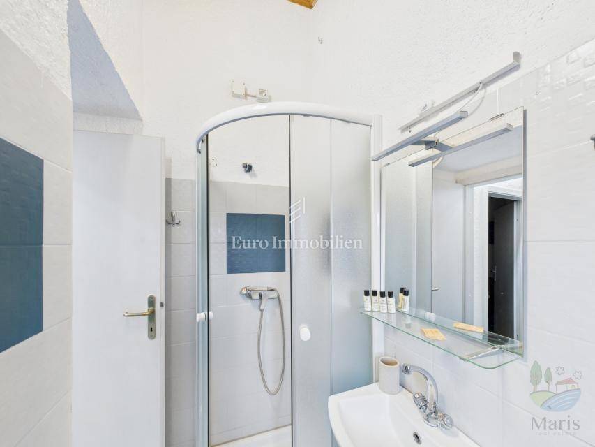 Located in a quiet area of Medulin, just 350 meters from the sea and 900 meters from a well-known sandy beach, this house offers four separate apartments – a perfect combination for living, vacation, and investment. The house has a total area of 207 m², spreads over three floors, and consists of: